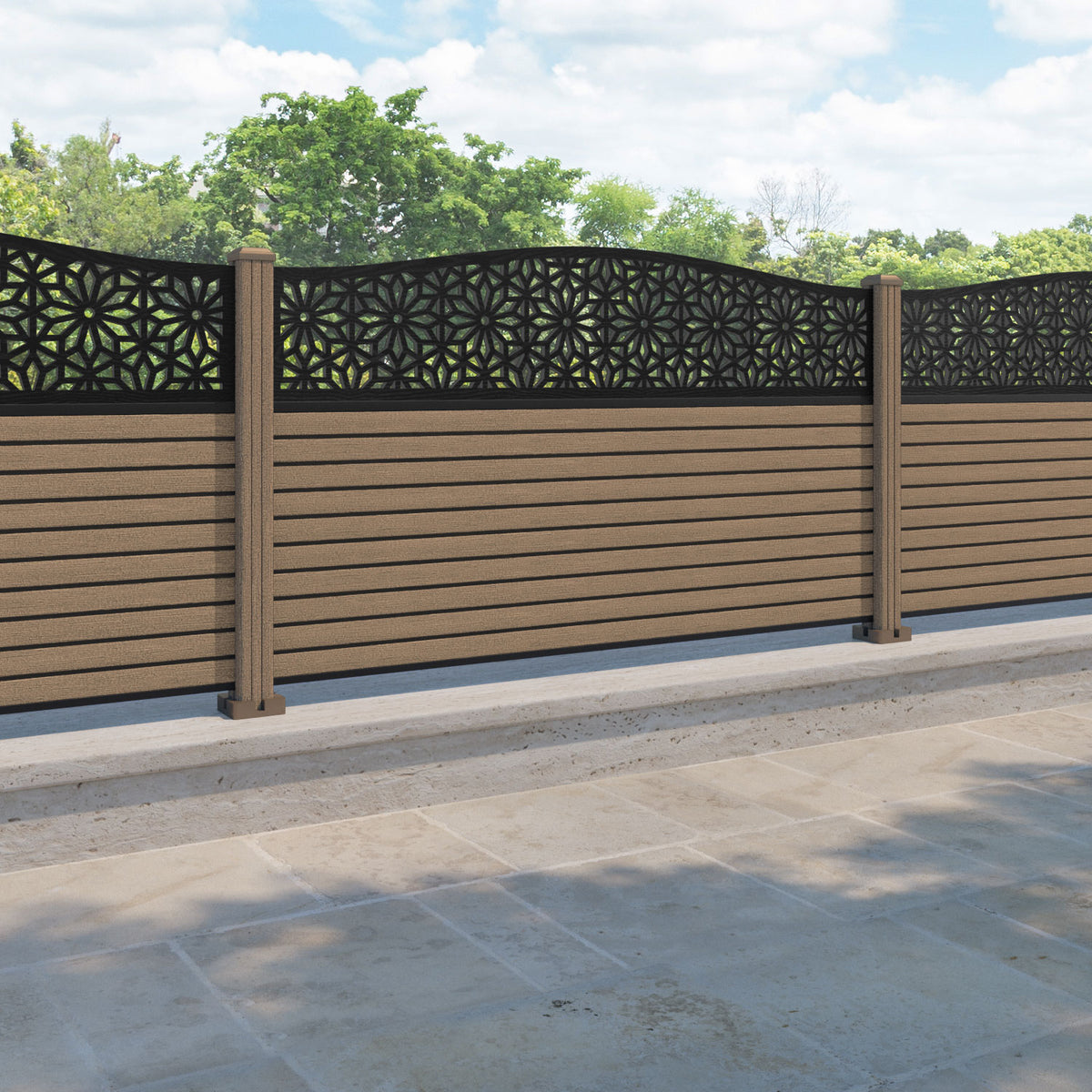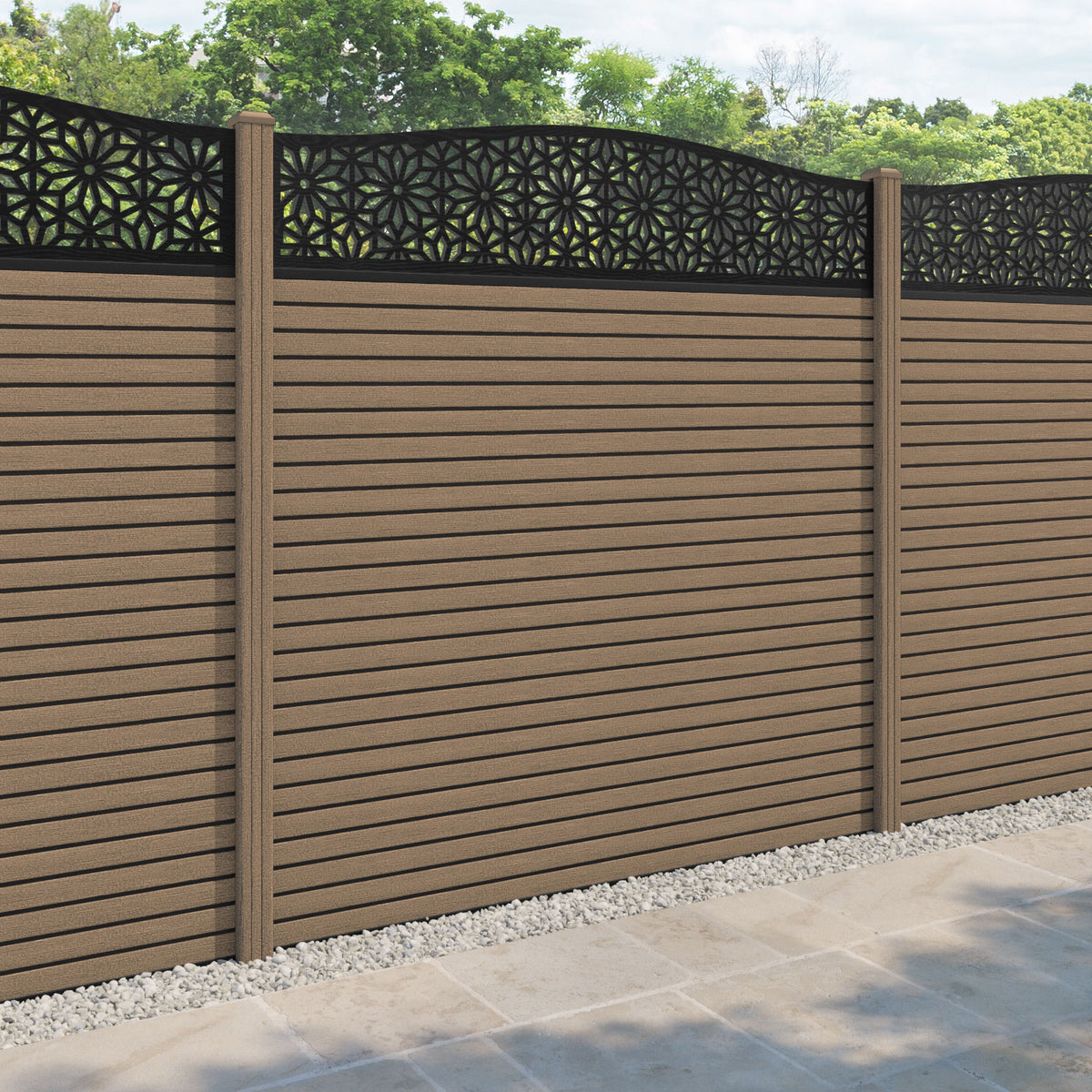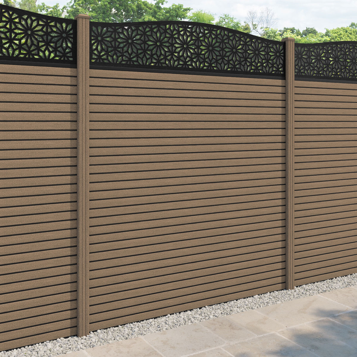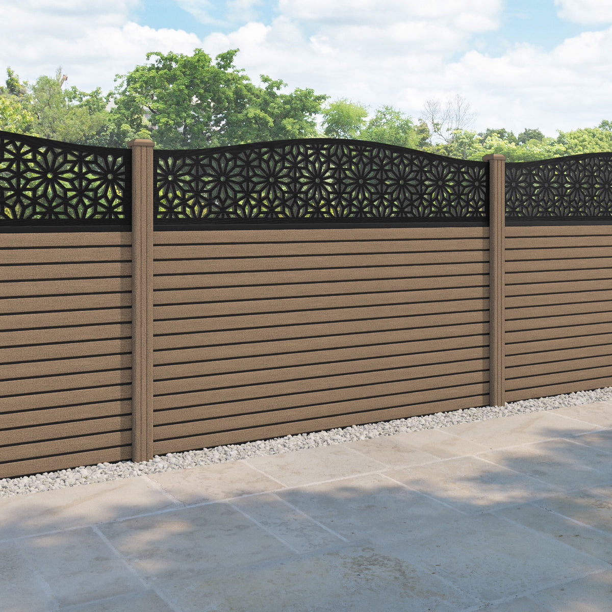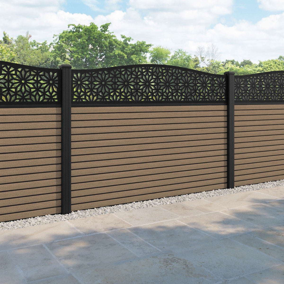 Hudson Narwa Curved Top Fence Panel Teak - with our composite posts