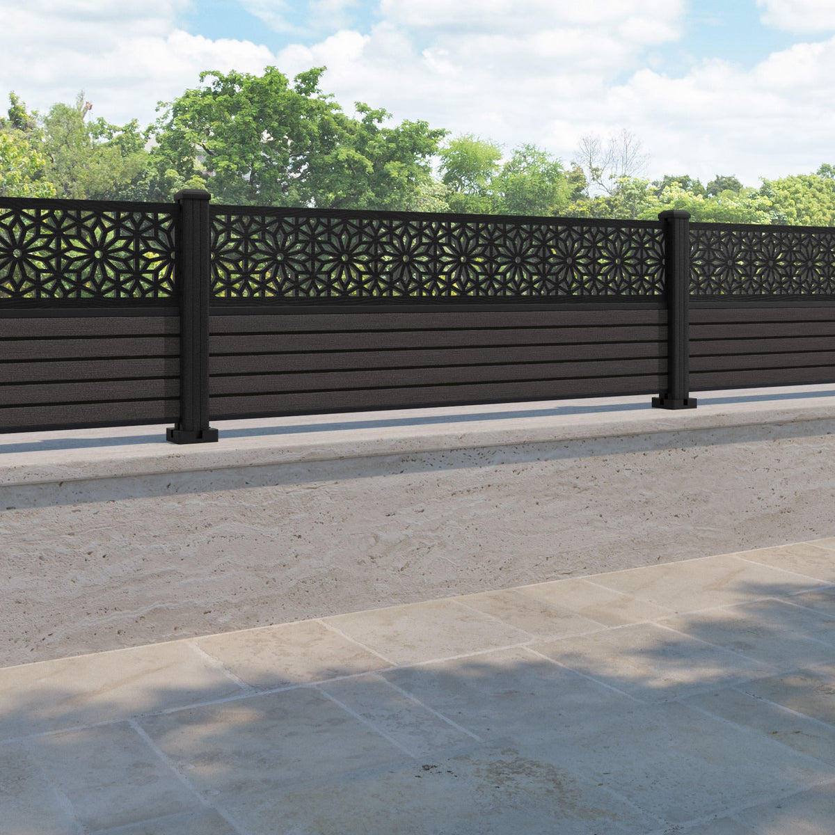 Hudson Narwa Fence Panel Dark Oak - with our composite posts