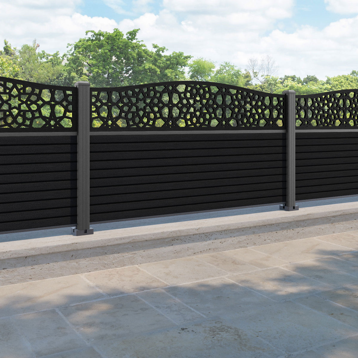 Hudson Nazira Curved Top Fence Panel Black - with our aluminium posts