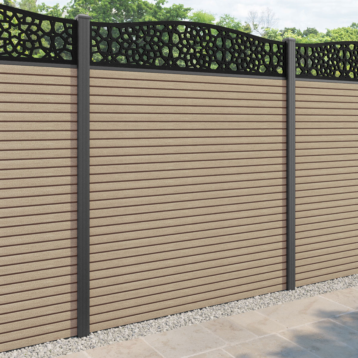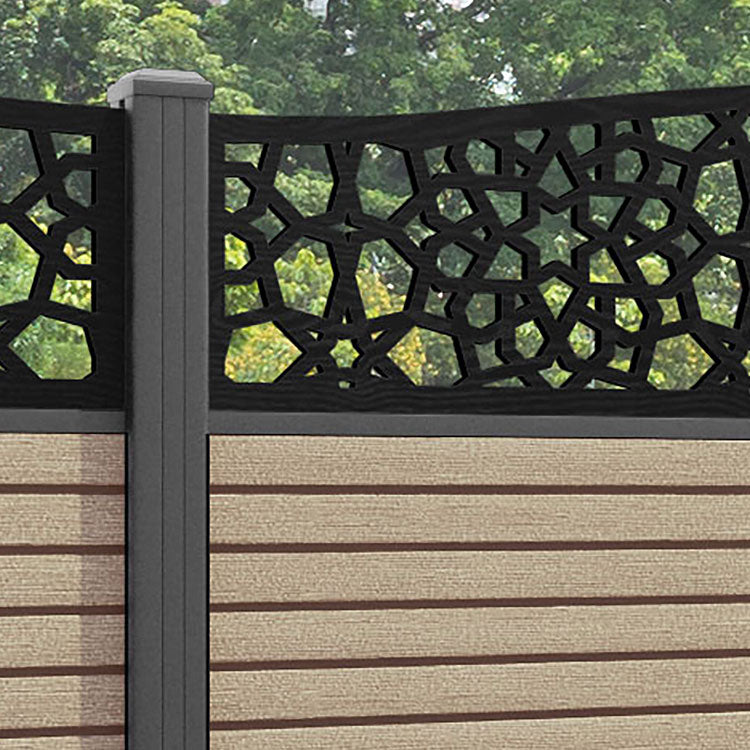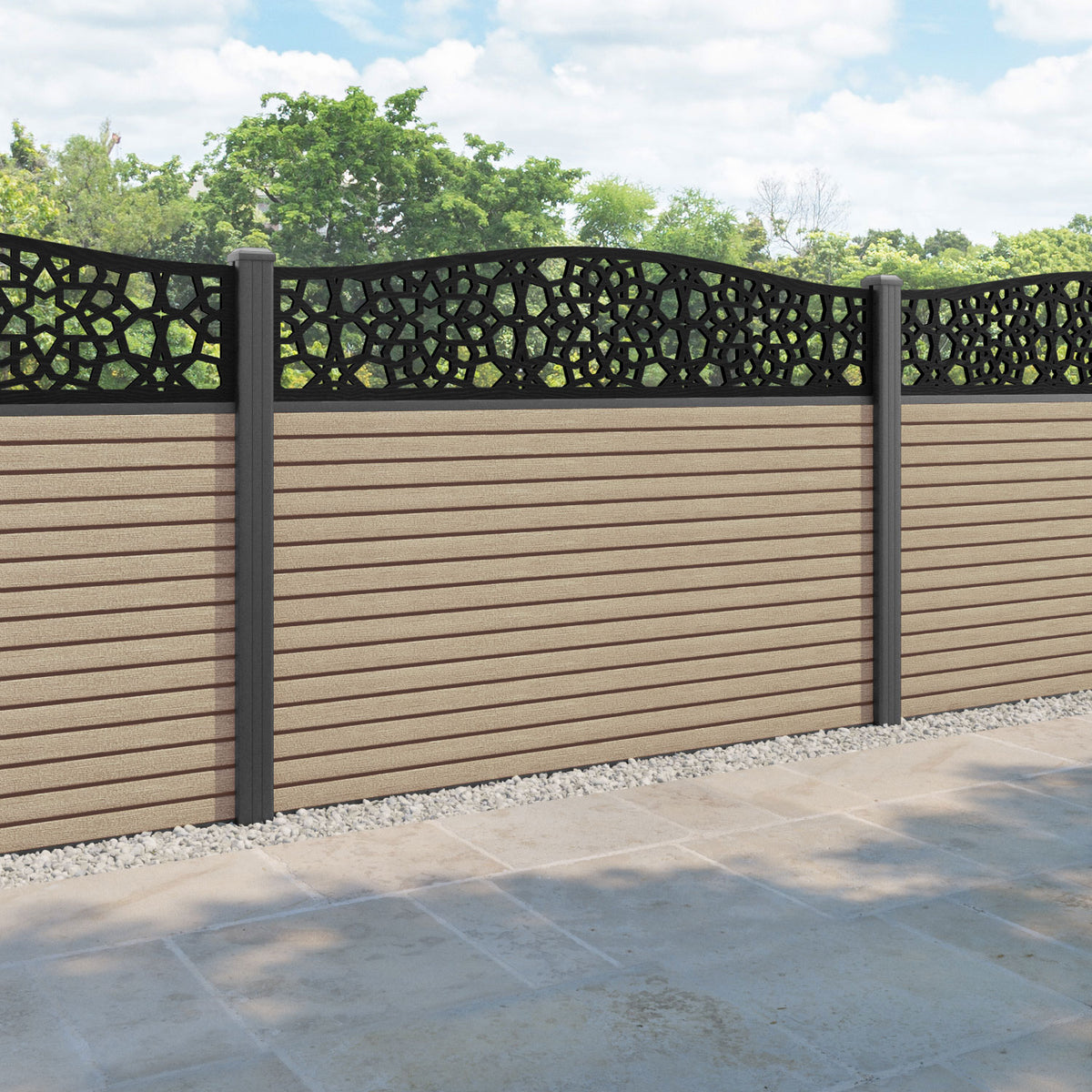 Hudson Nazira Curved Top Fence Panel Light Oak - with our aluminium posts