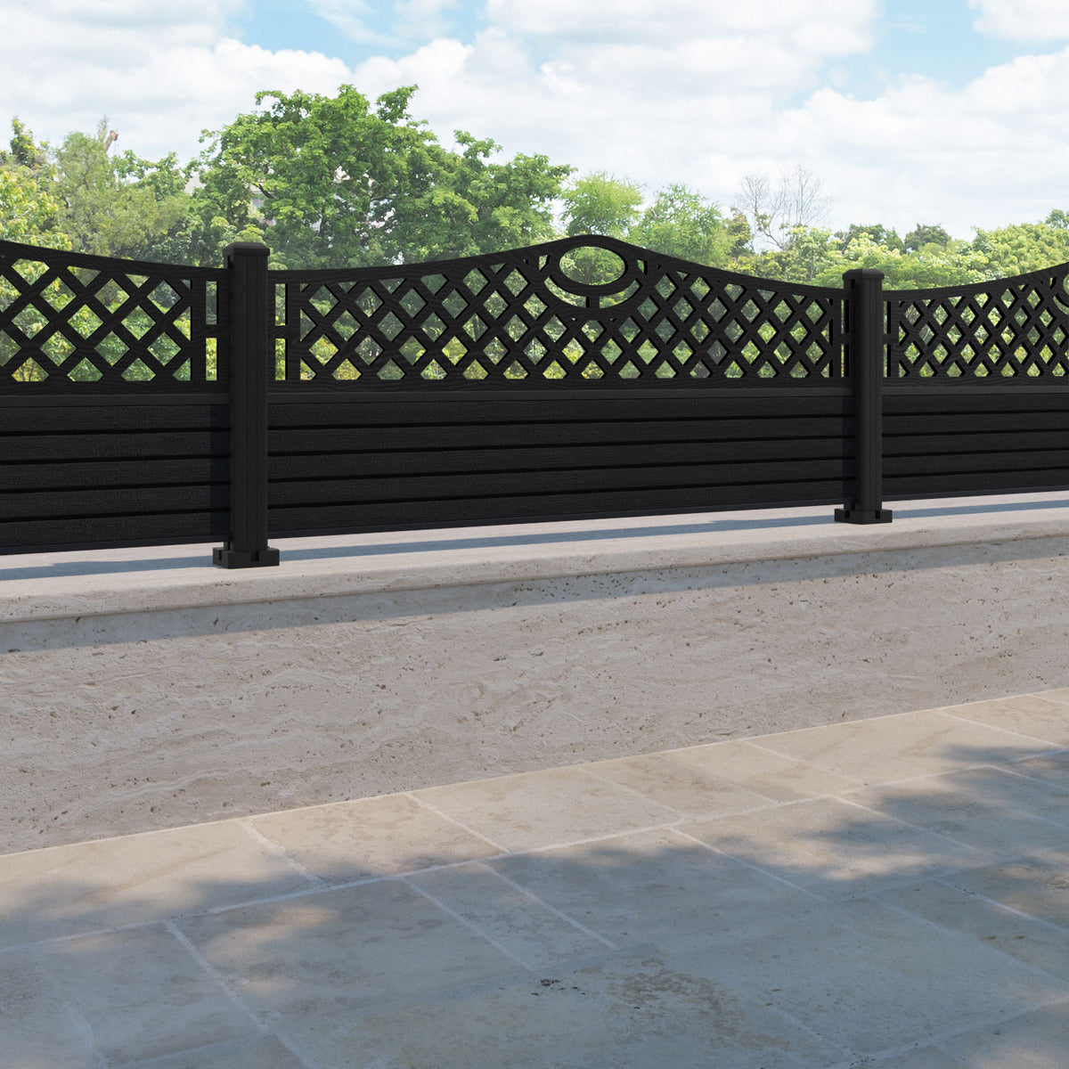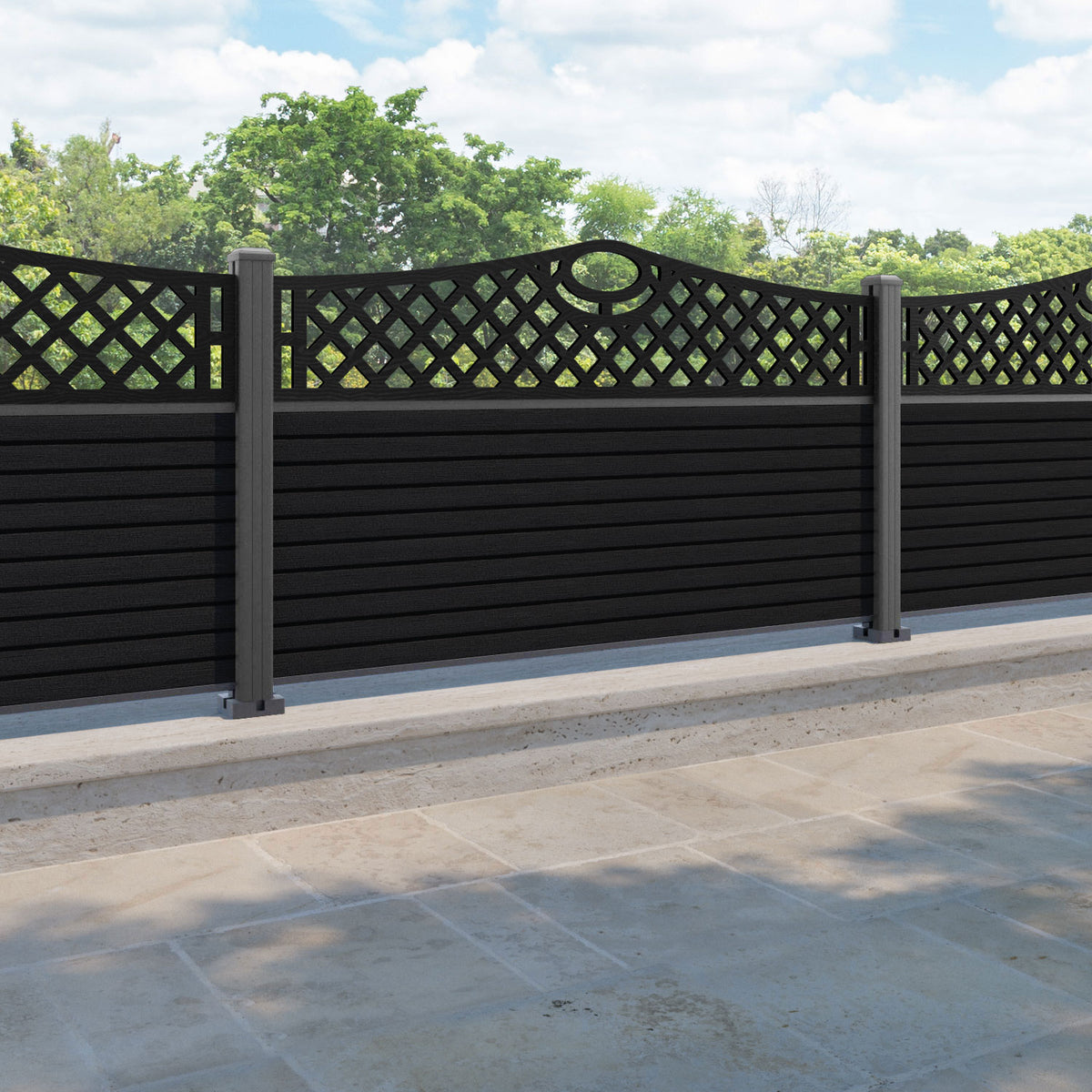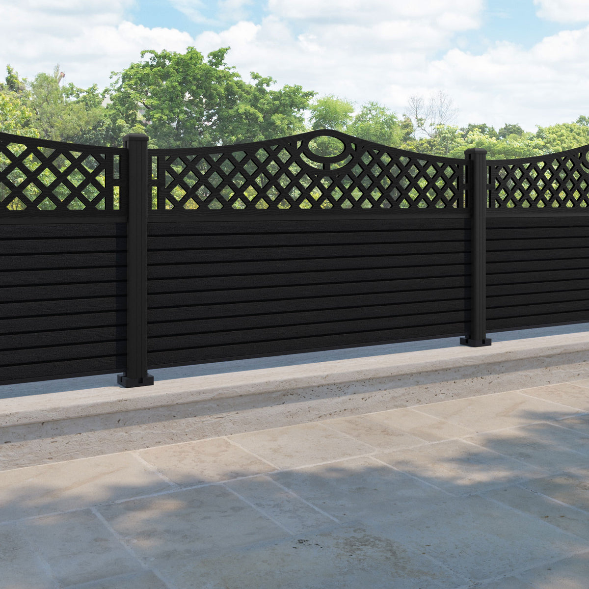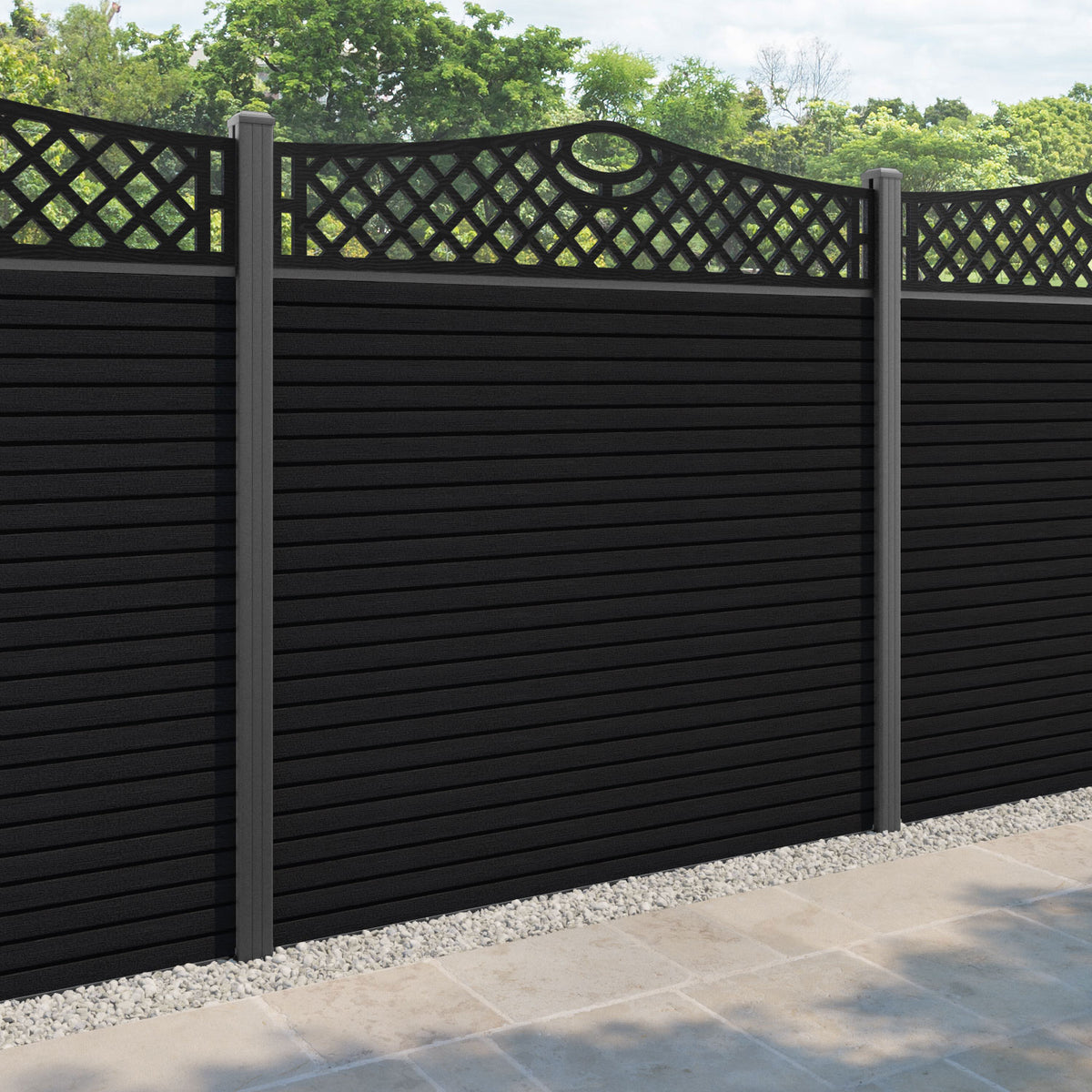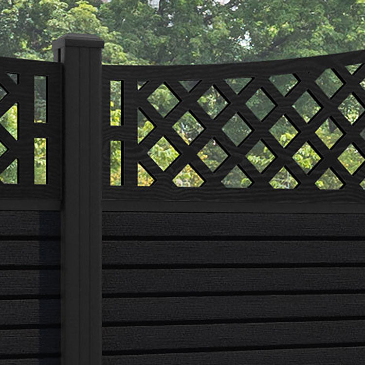 Hudson Oxford Curved Top Fence Panel Black - with our aluminium posts