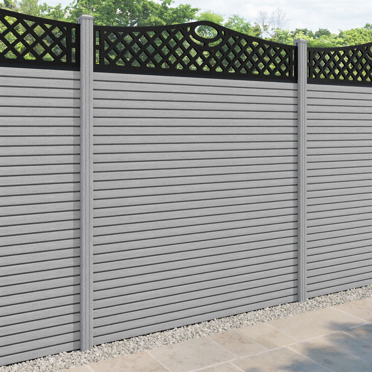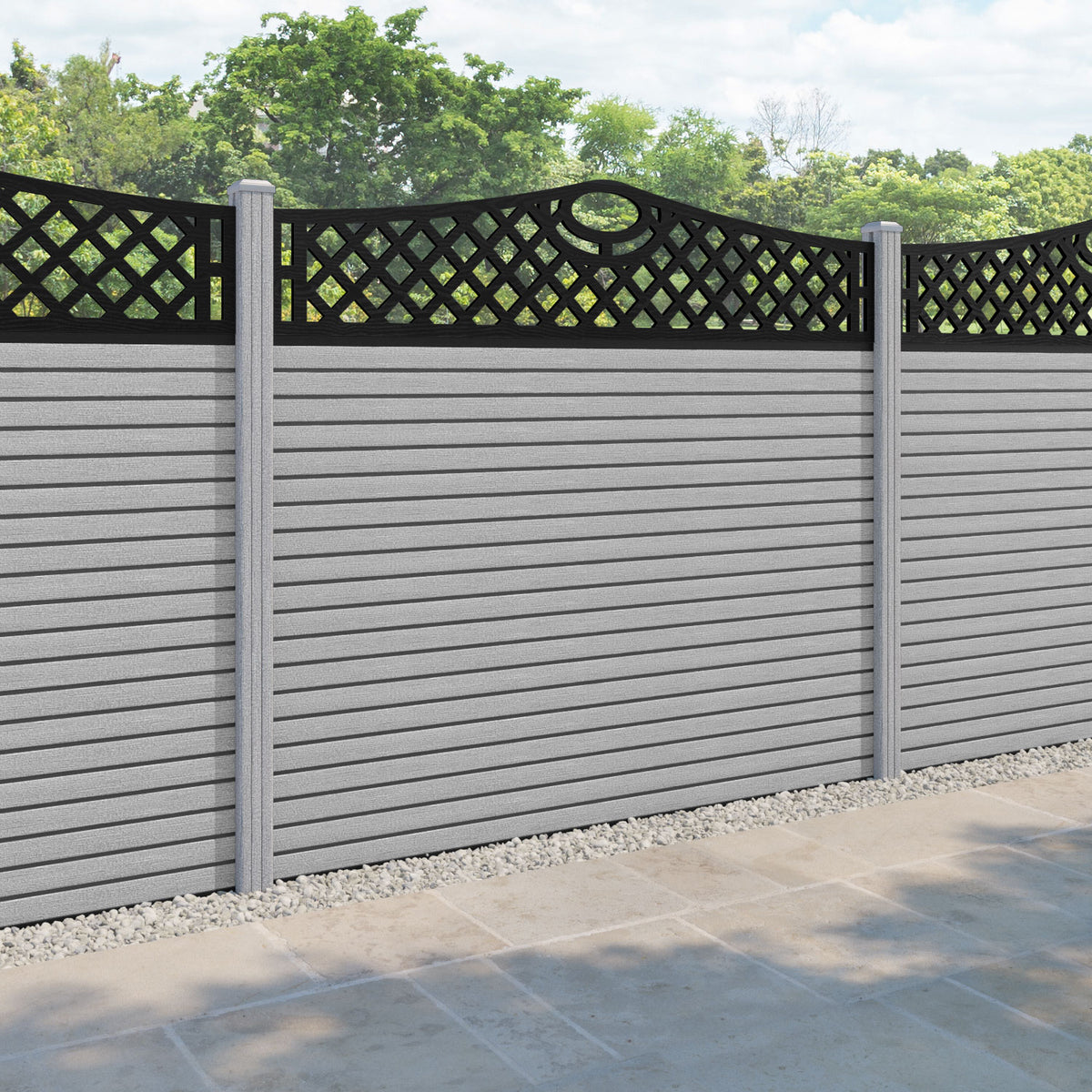 Hudson Oxford Curved Top Fence Panel Light Grey - with our composite posts