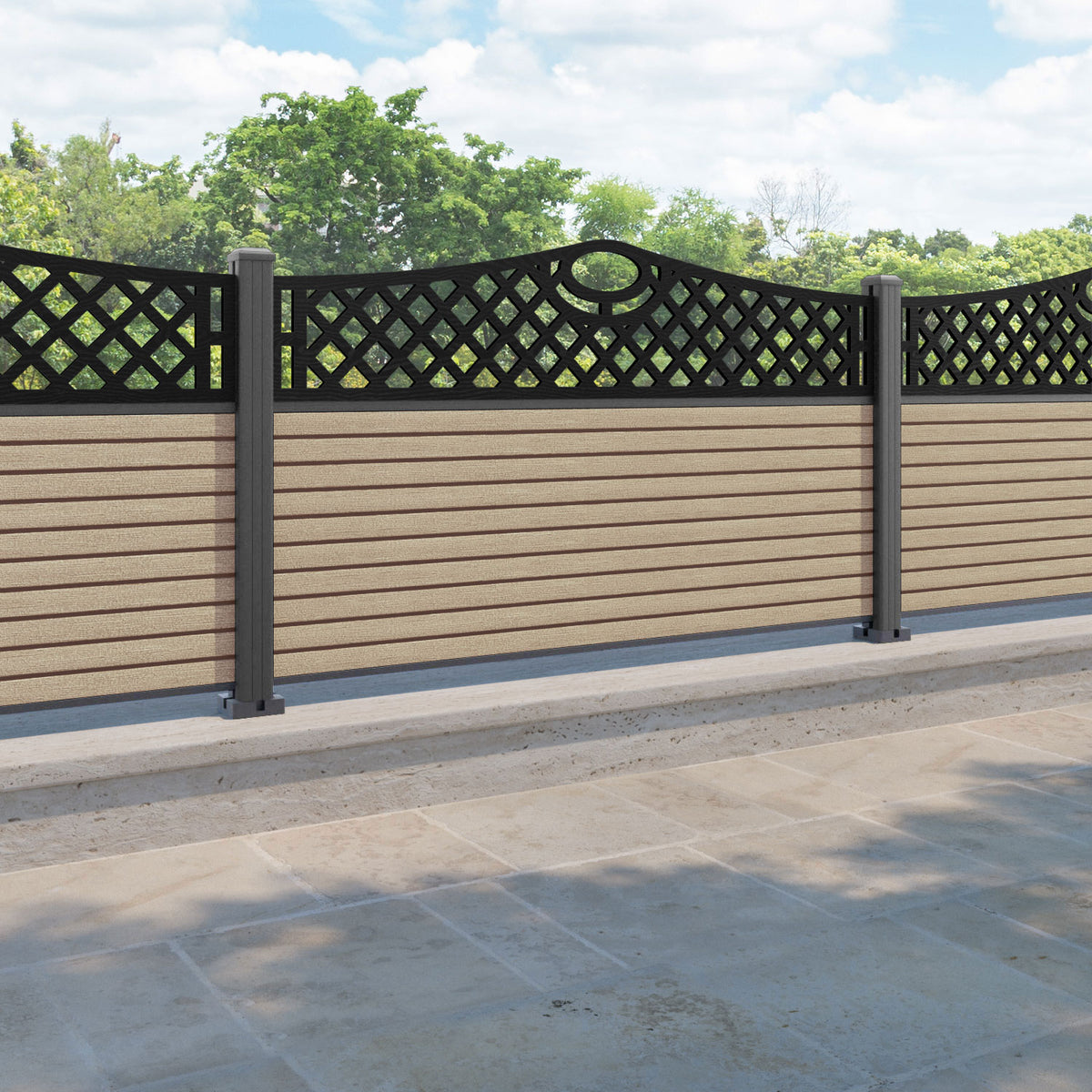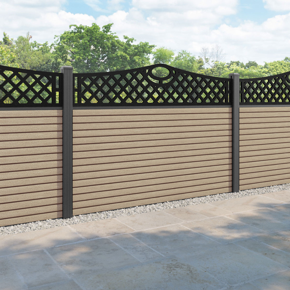 Hudson Oxford Curved Top Fence Panel Light Oak - with our aluminium posts