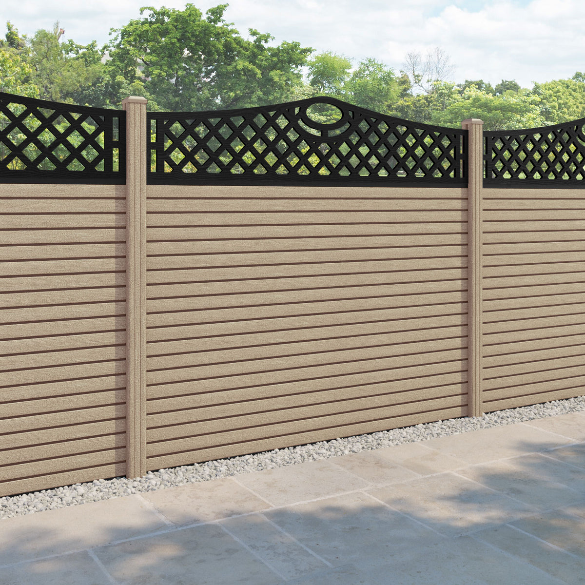Hudson Oxford Curved Top Fence Panel Light Oak - with our composite posts