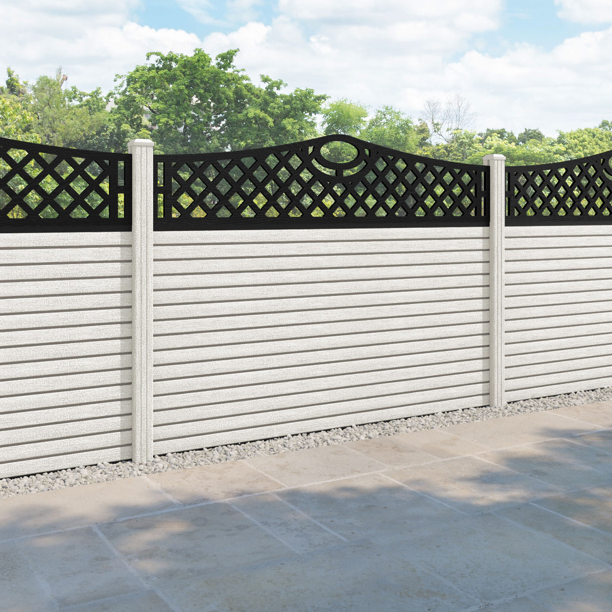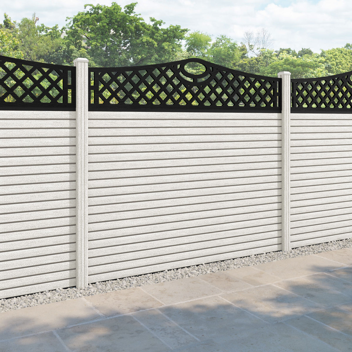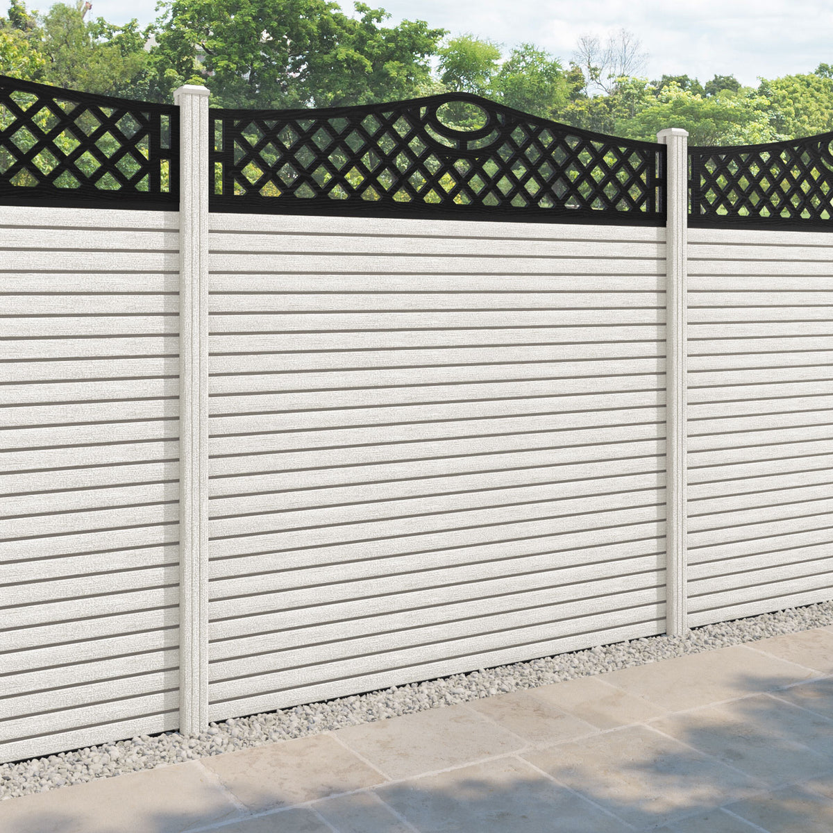 Hudson Oxford Curved Top Fence Panel Light Stone - with our composite posts