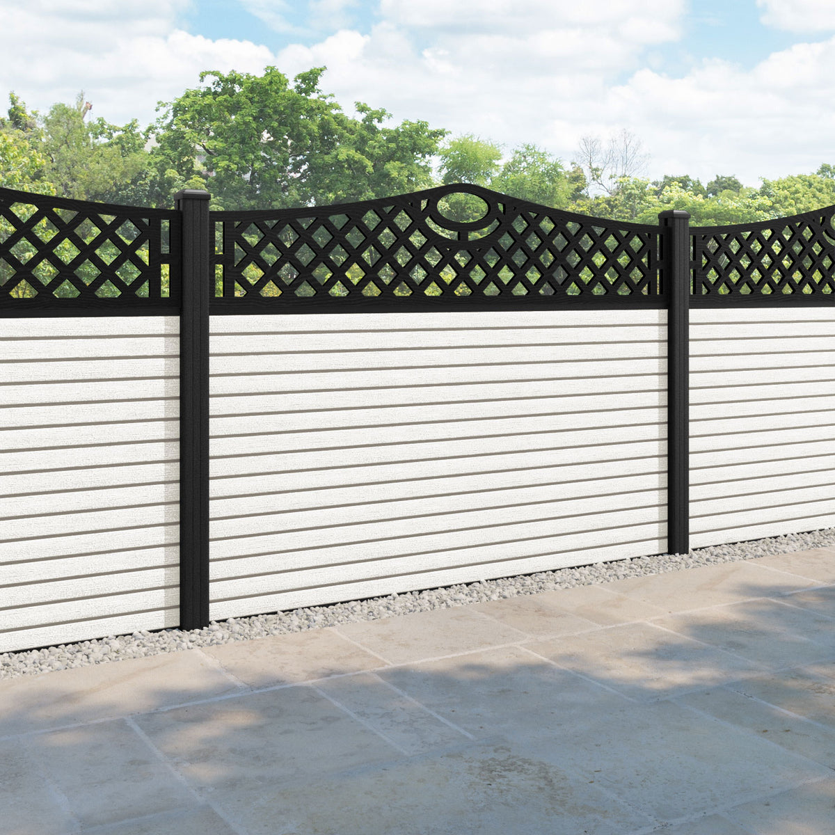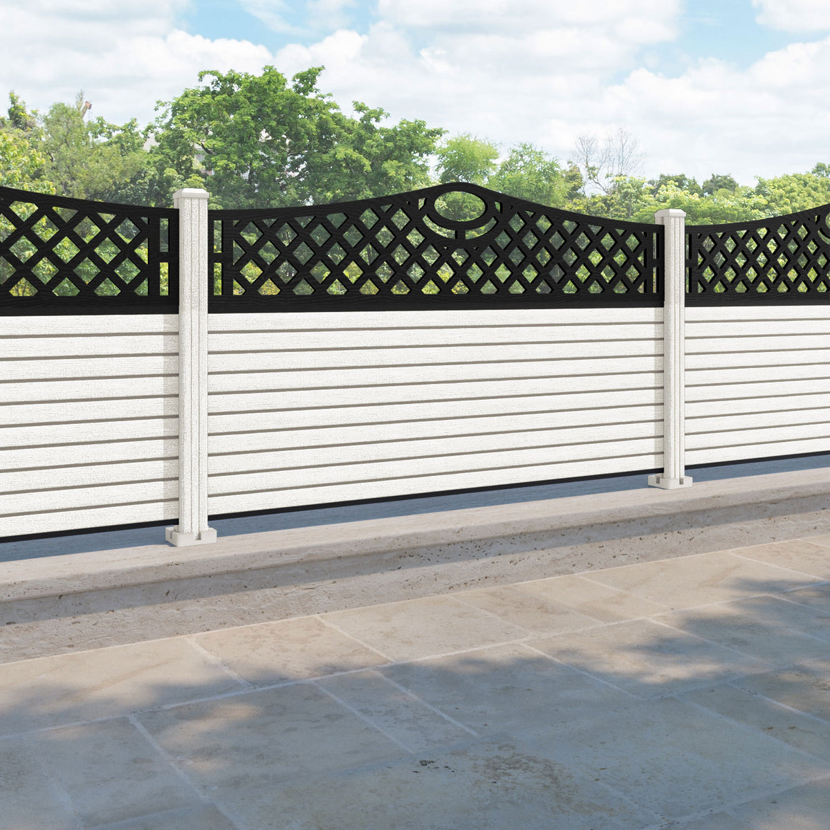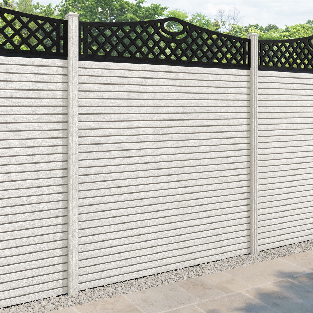 Hudson Oxford Curved Top Fence Panel Light Stone - with our composite posts
