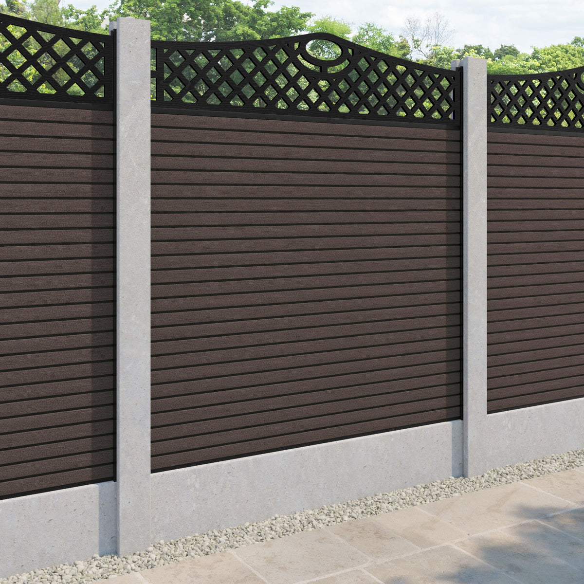 Hudson Oxford Curved Top Fence Panel Mid Brown - for existing concrete posts