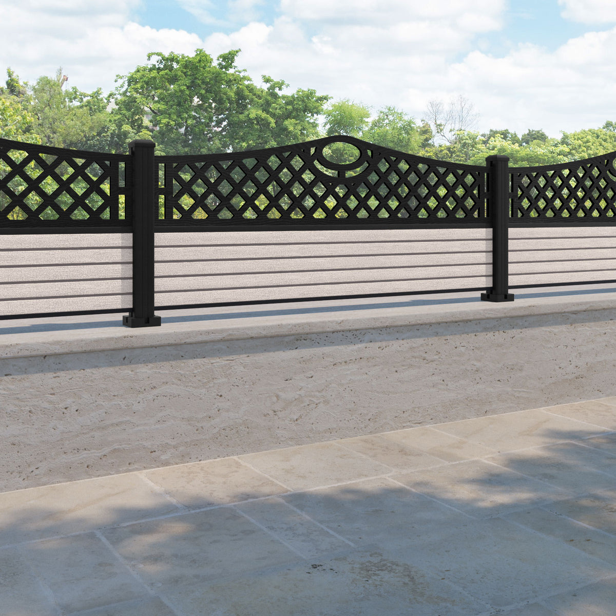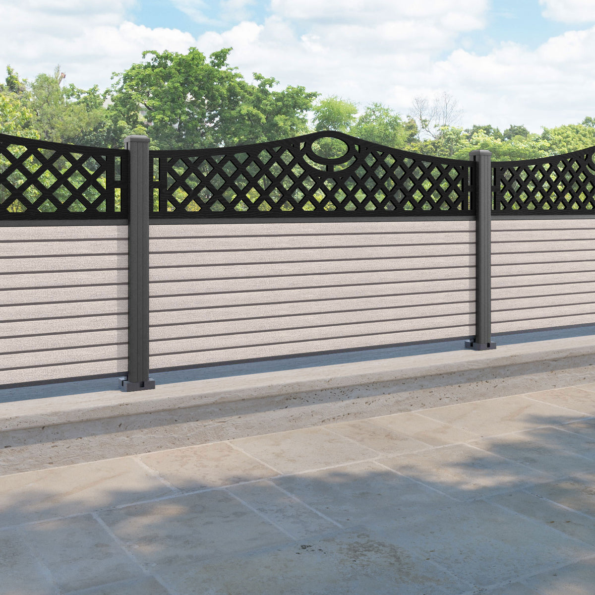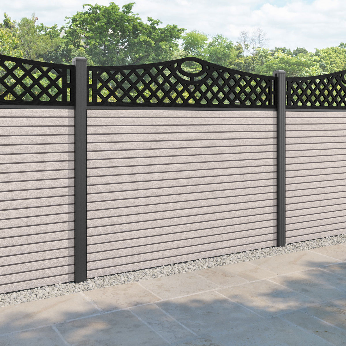 Hudson Oxford Curved Top Fence Panel Mid Stone - with our aluminium posts