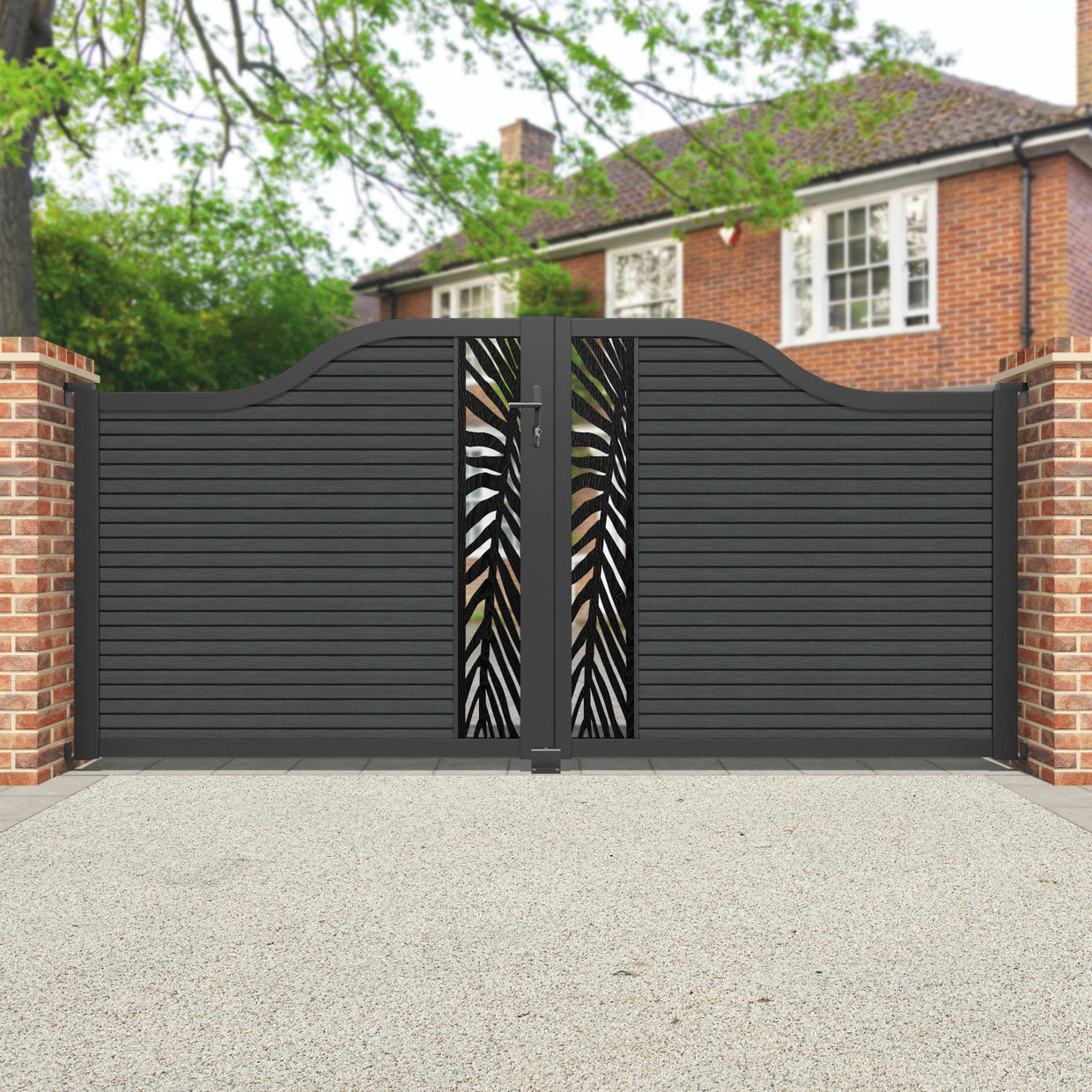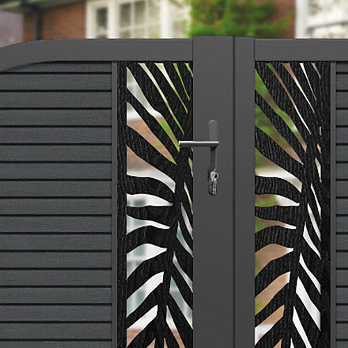 Hudson Palm Curved Top Driveway Gate Dark Grey - Middle Screen
