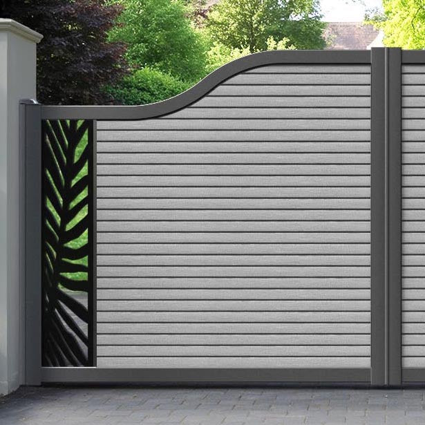 Hudson Palm Curved Top Driveway Gate Light Grey - End Screen