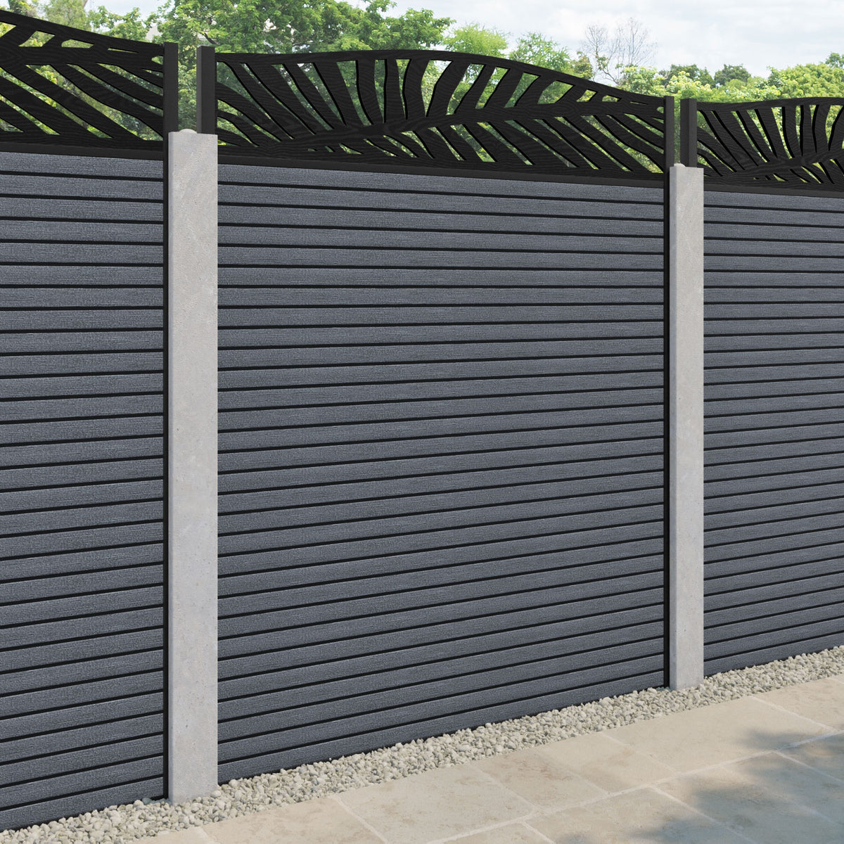 Hudson Palm Curved Top Fence Panel Anthracite - for existing concrete posts