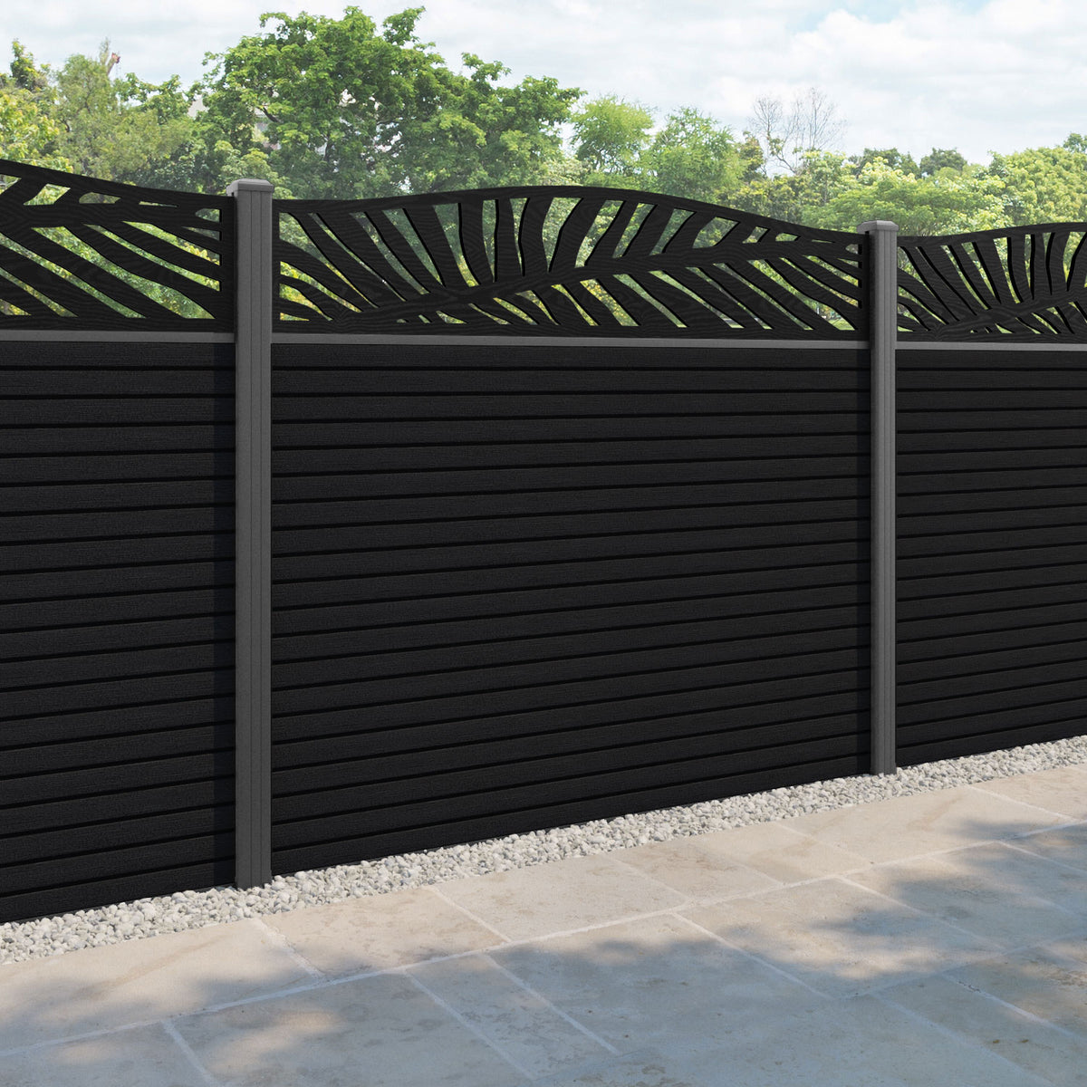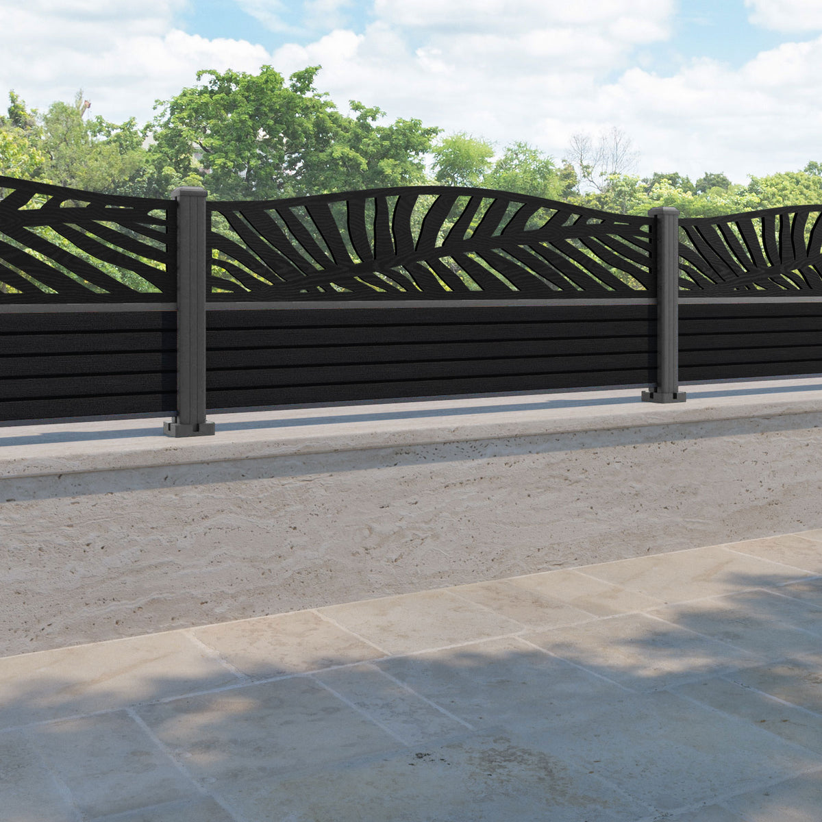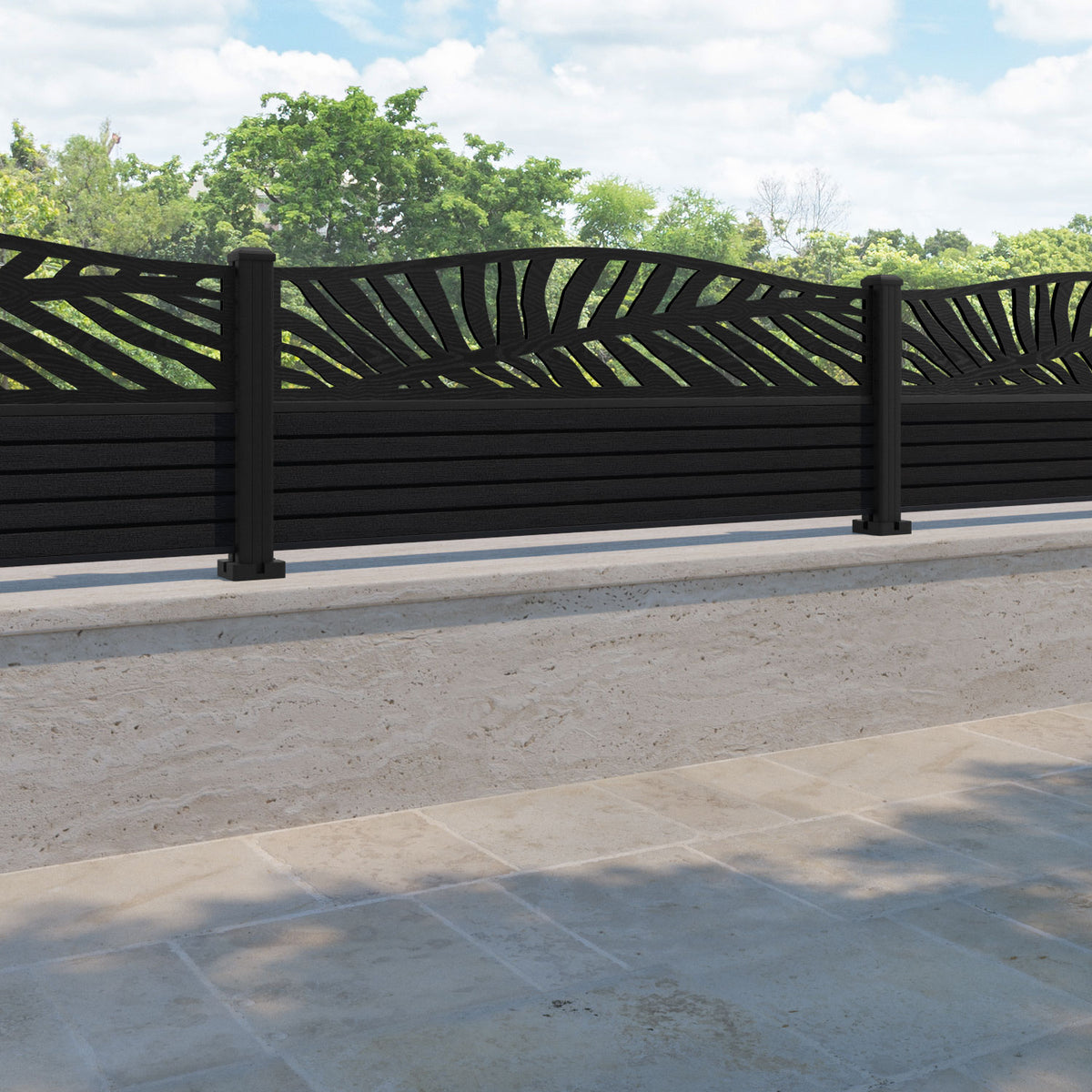 Hudson Palm Curved Top Fence Panel Black - with our aluminium posts