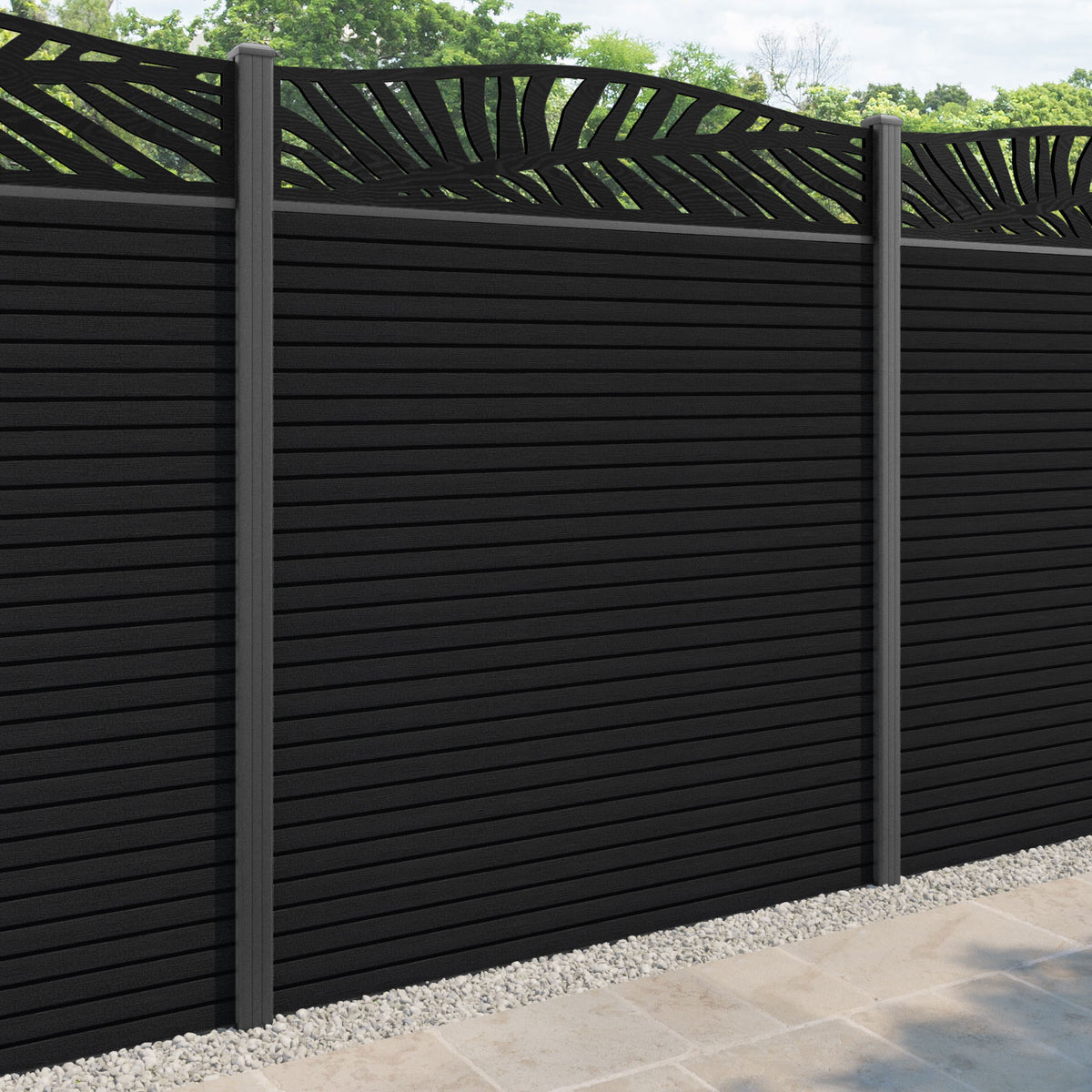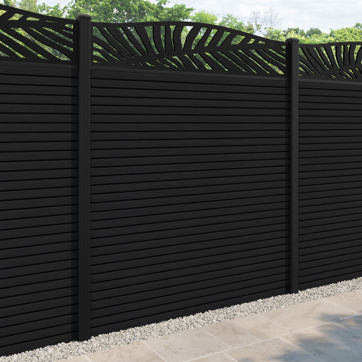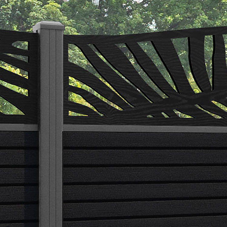 Hudson Palm Curved Top Fence Panel Black - with our aluminium posts