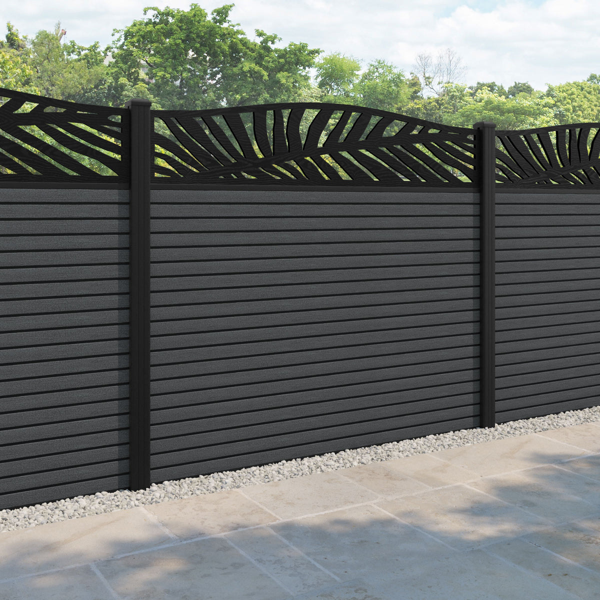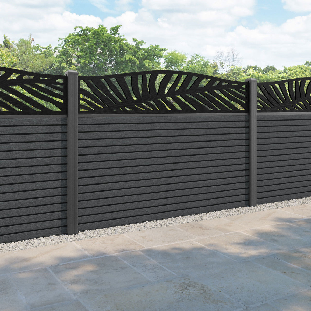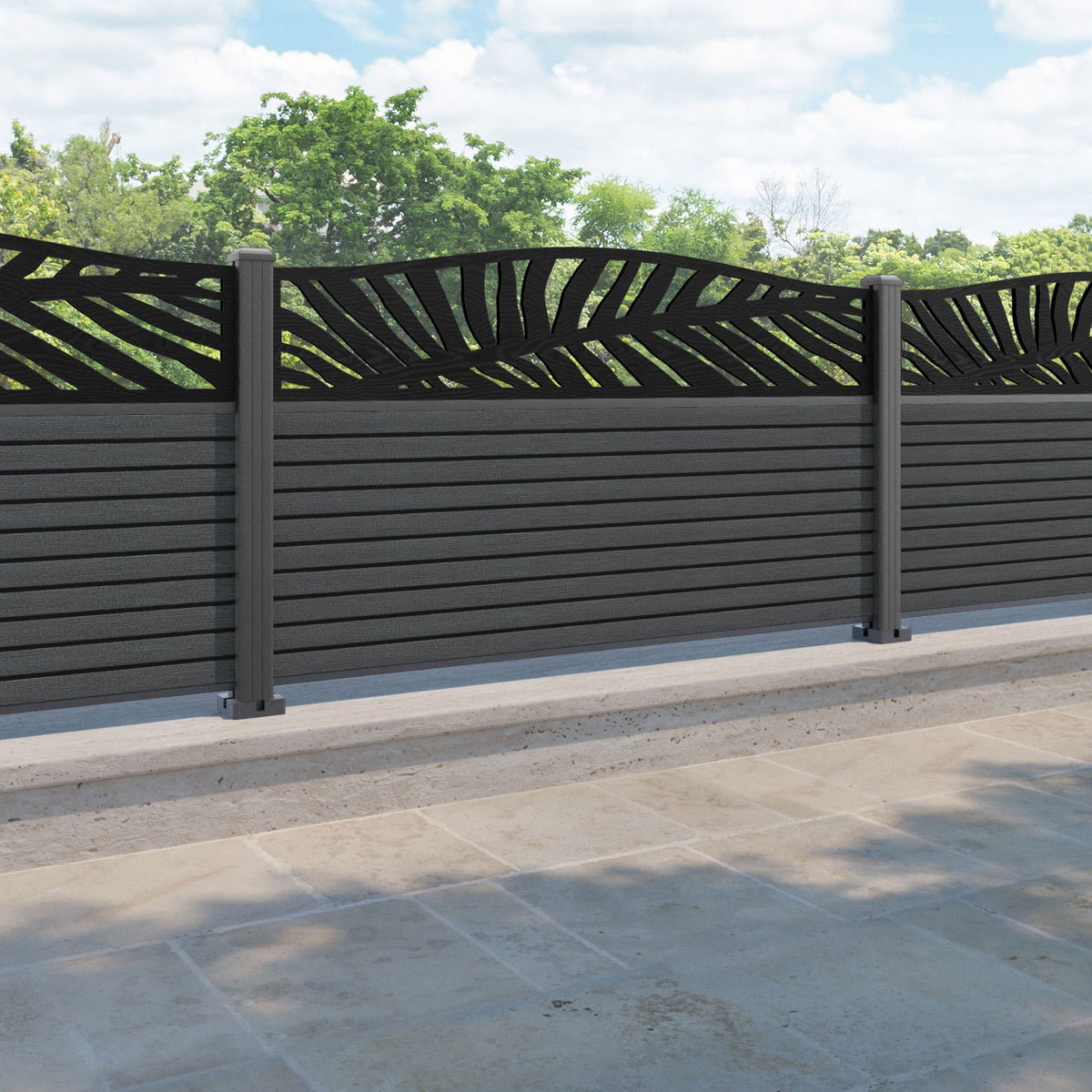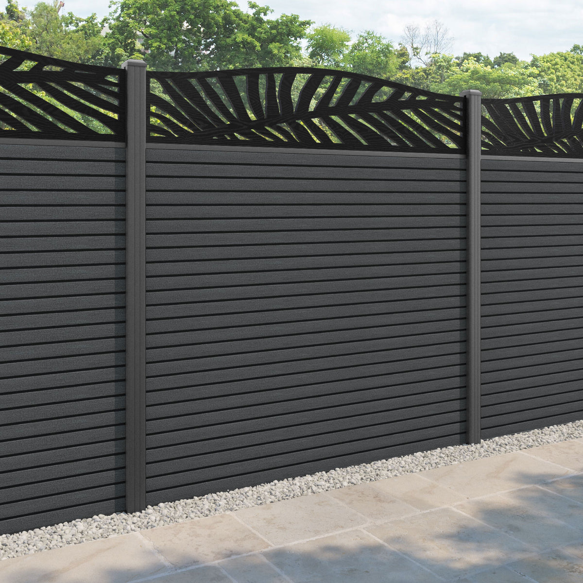 Hudson Palm Curved Top Fence Panel Dark Grey - with our aluminium posts