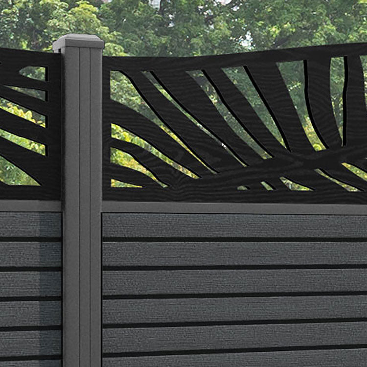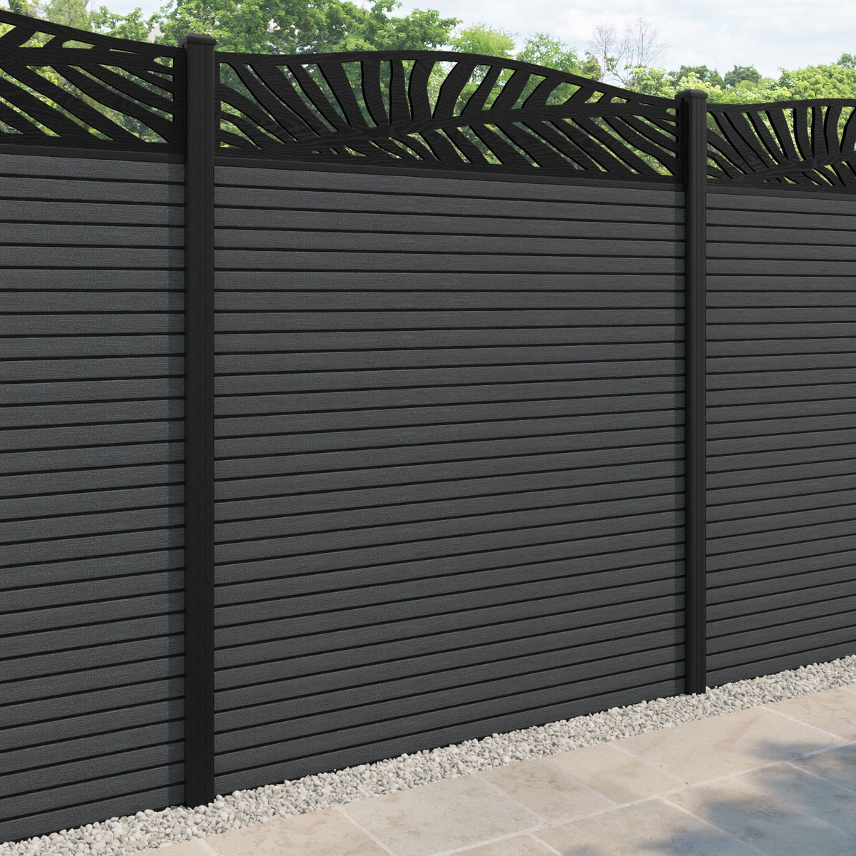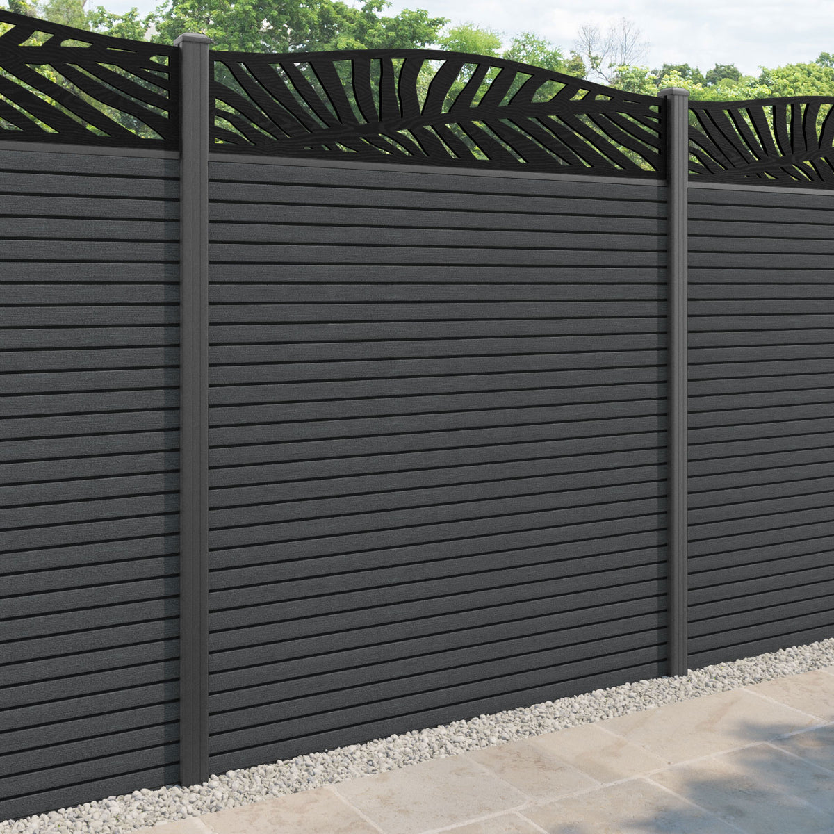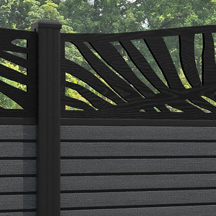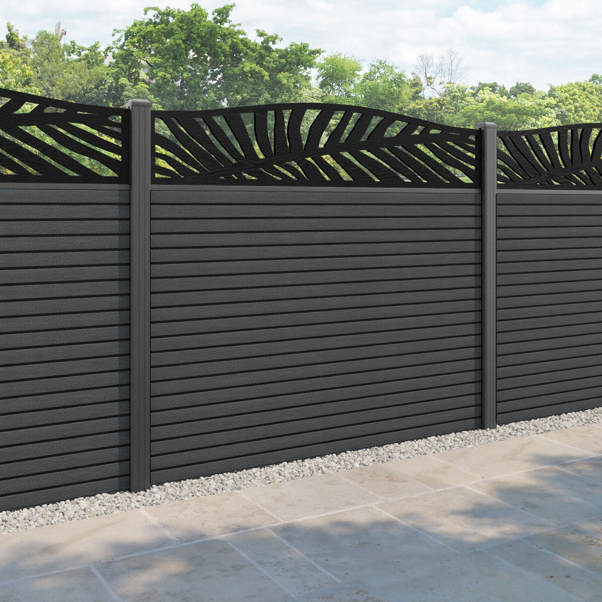 Hudson Palm Curved Top Fence Panel Dark Grey - with our aluminium posts