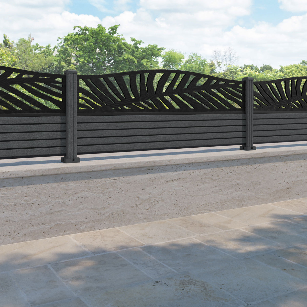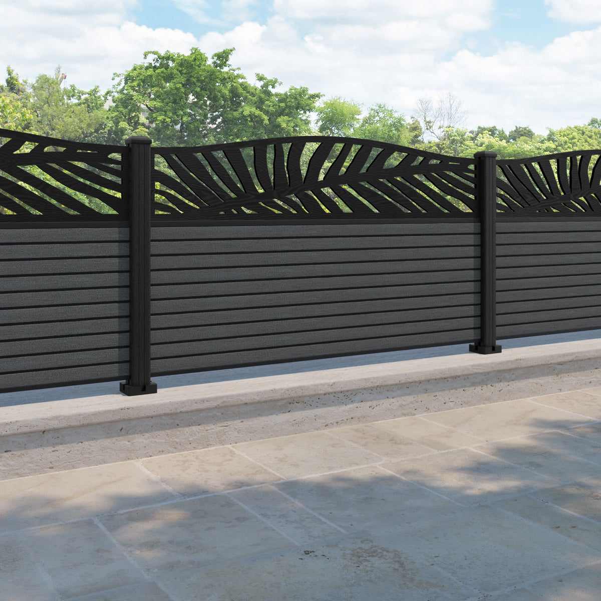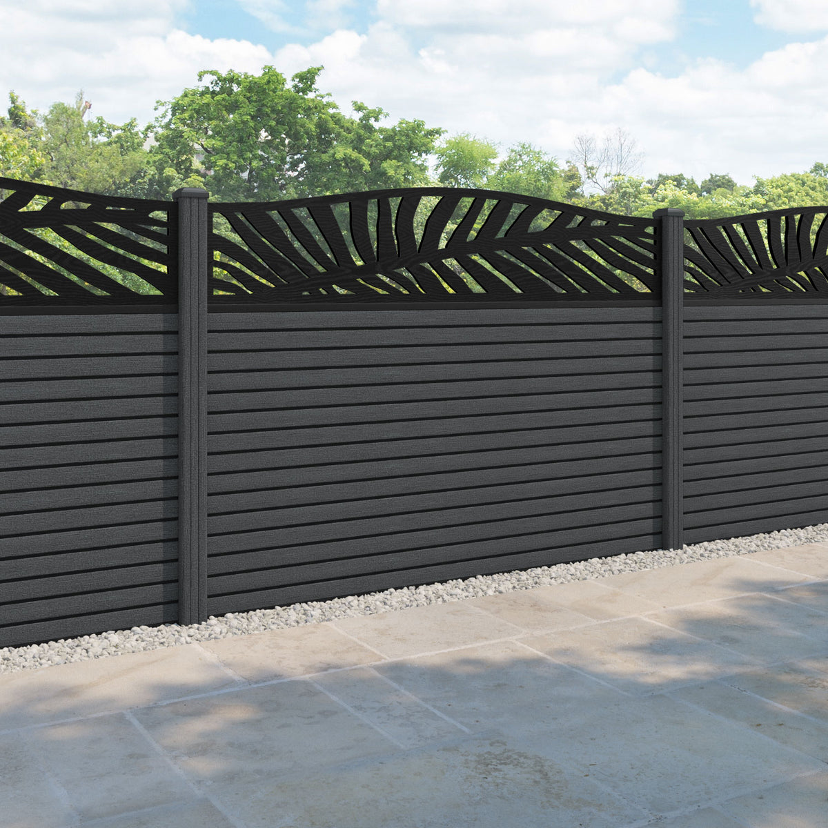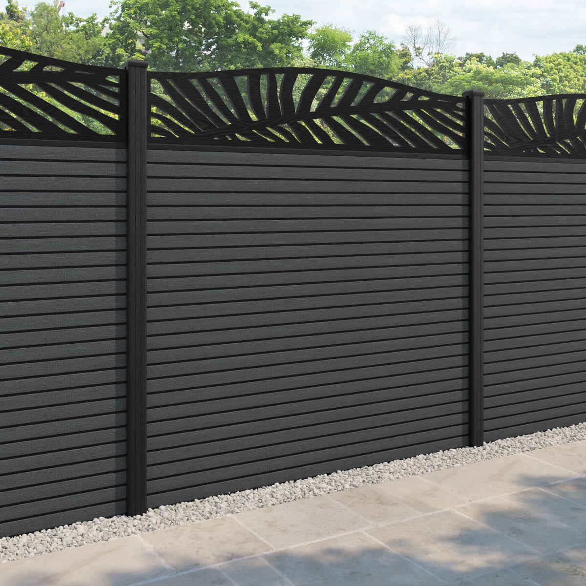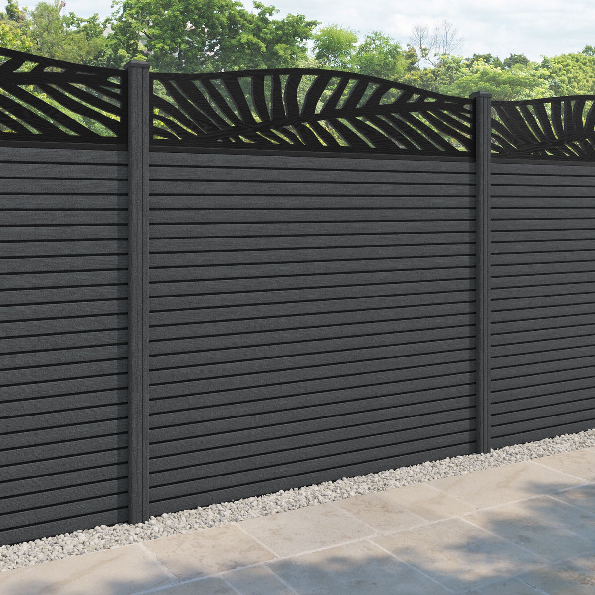 Hudson Palm Curved Top Fence Panel Dark Grey - with our composite posts