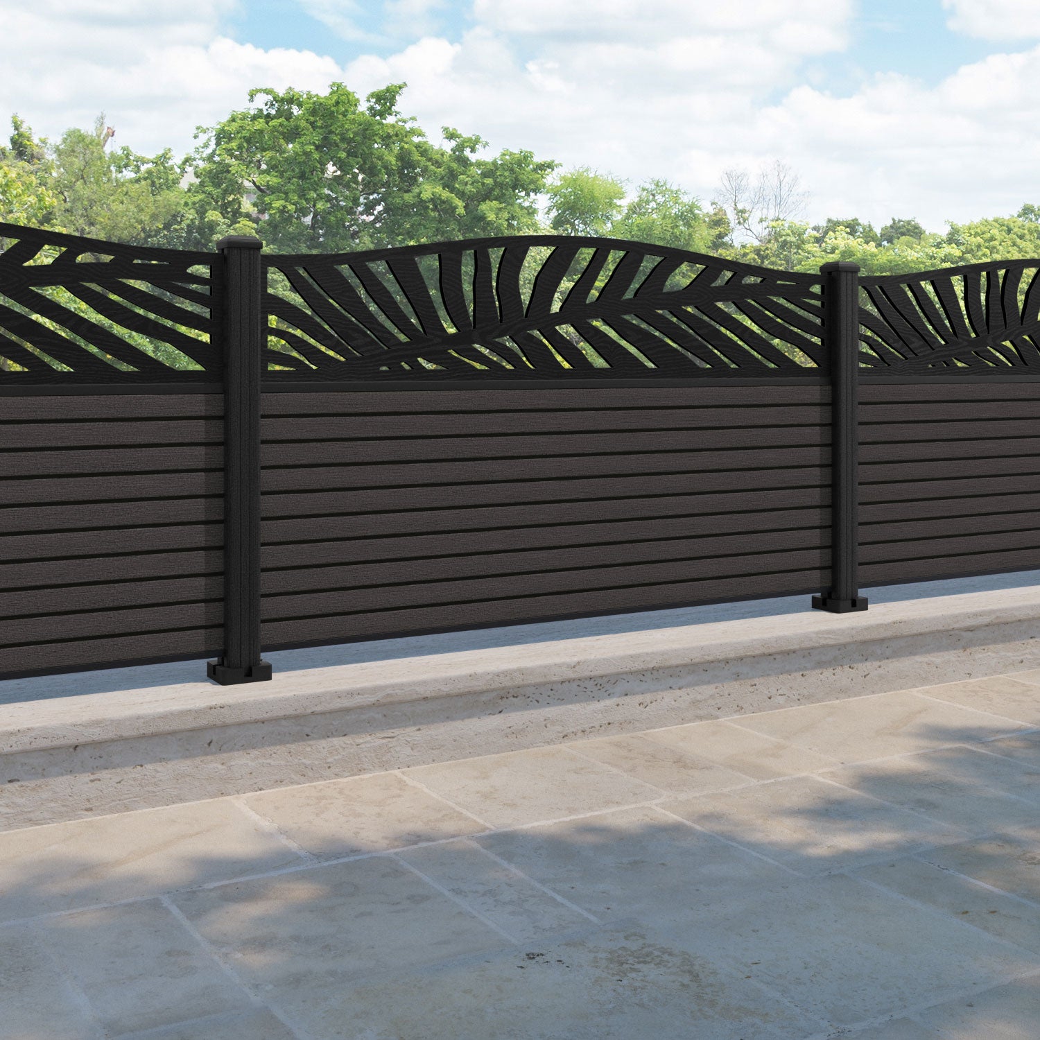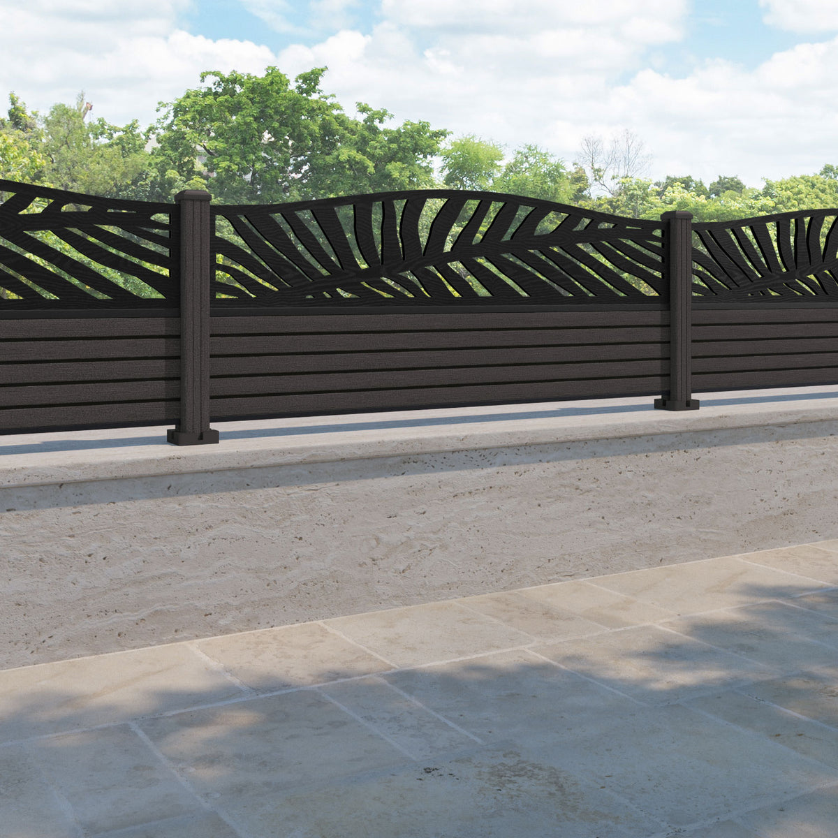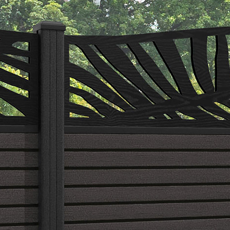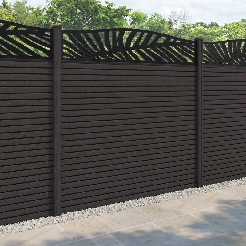 Hudson Palm Curved Top Fence Panel Dark Oak - with our composite posts