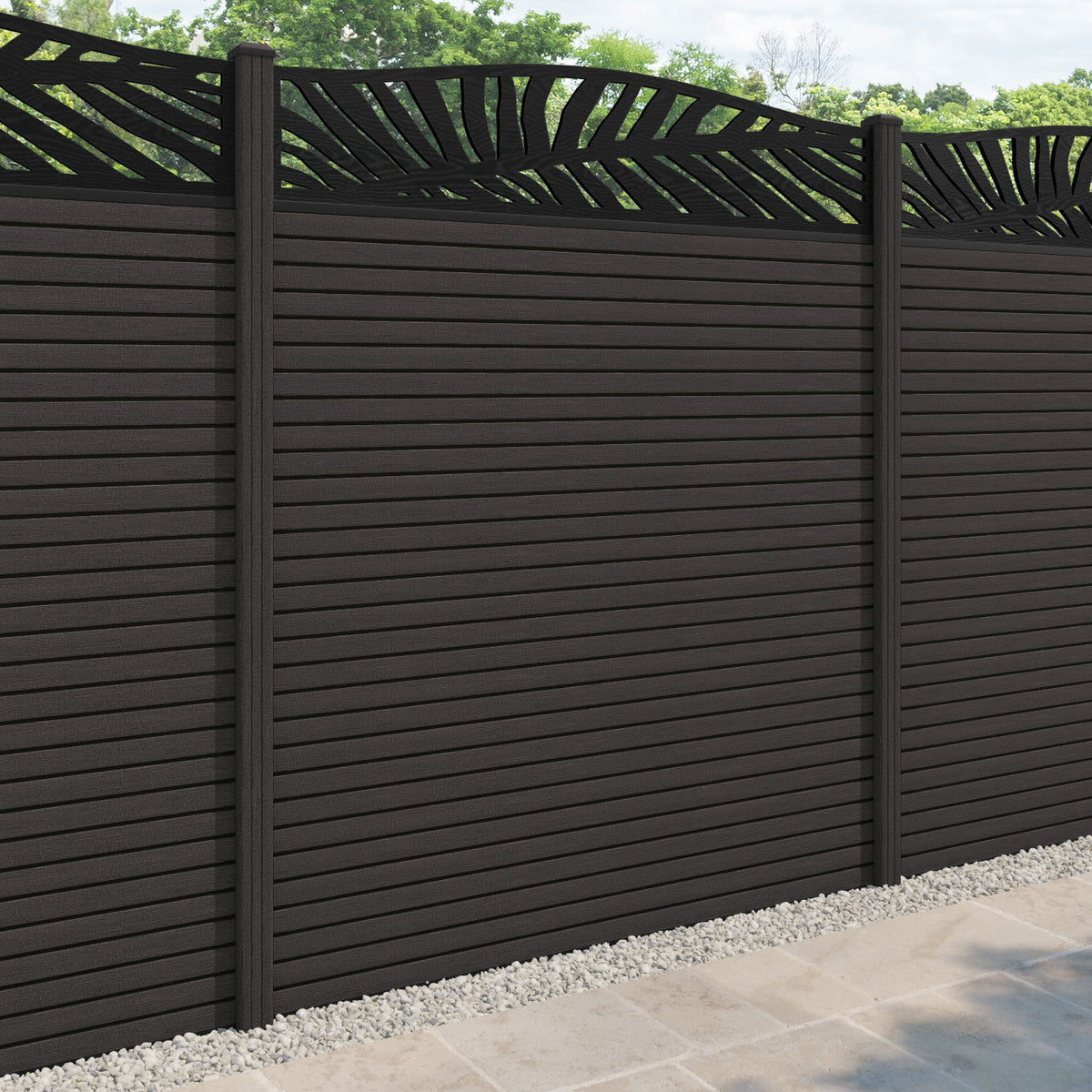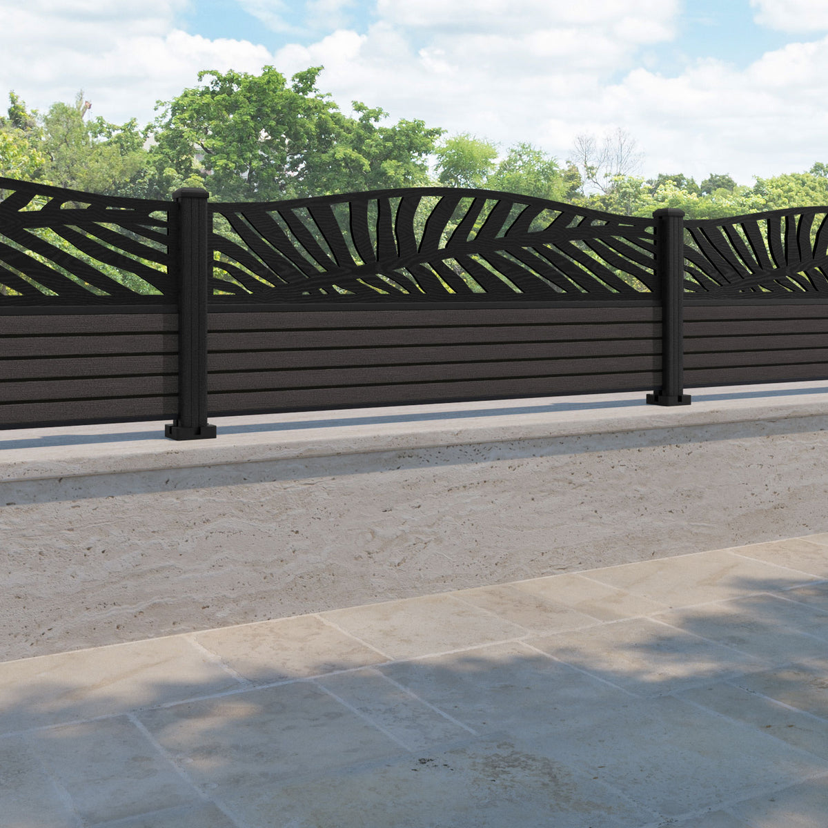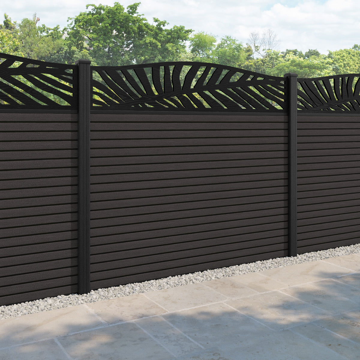 Hudson Palm Curved Top Fence Panel Dark Oak - with our composite posts