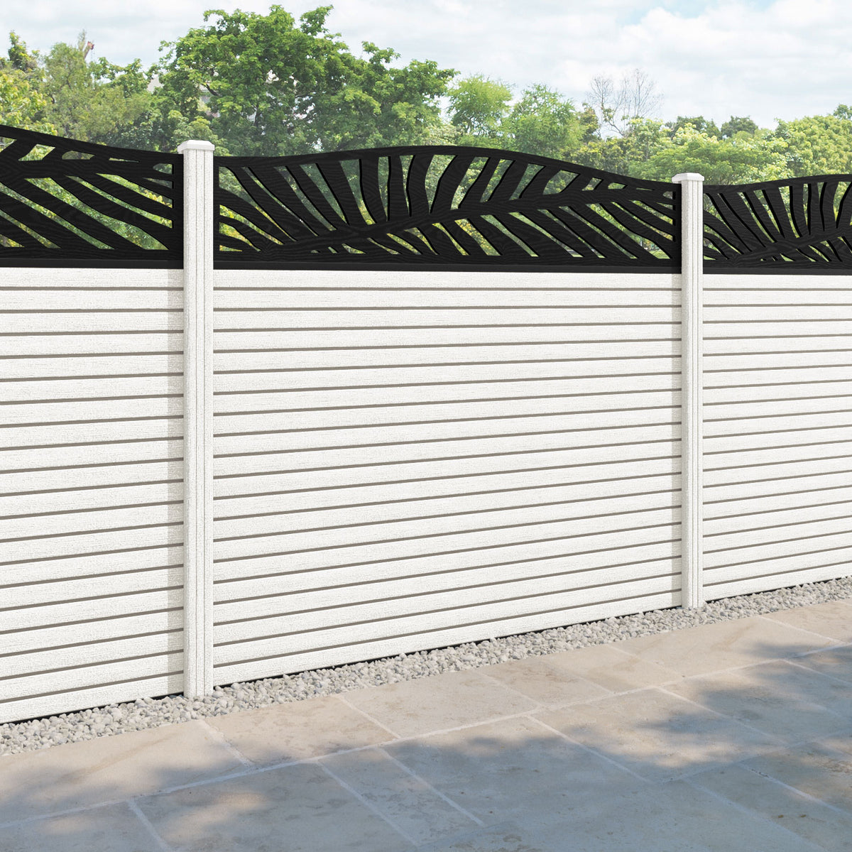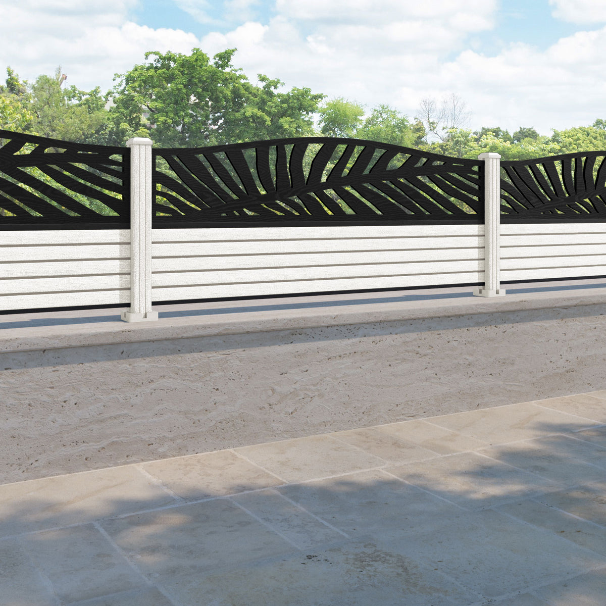 Hudson Palm Curved Top Fence Panel Light Stone - with our composite posts