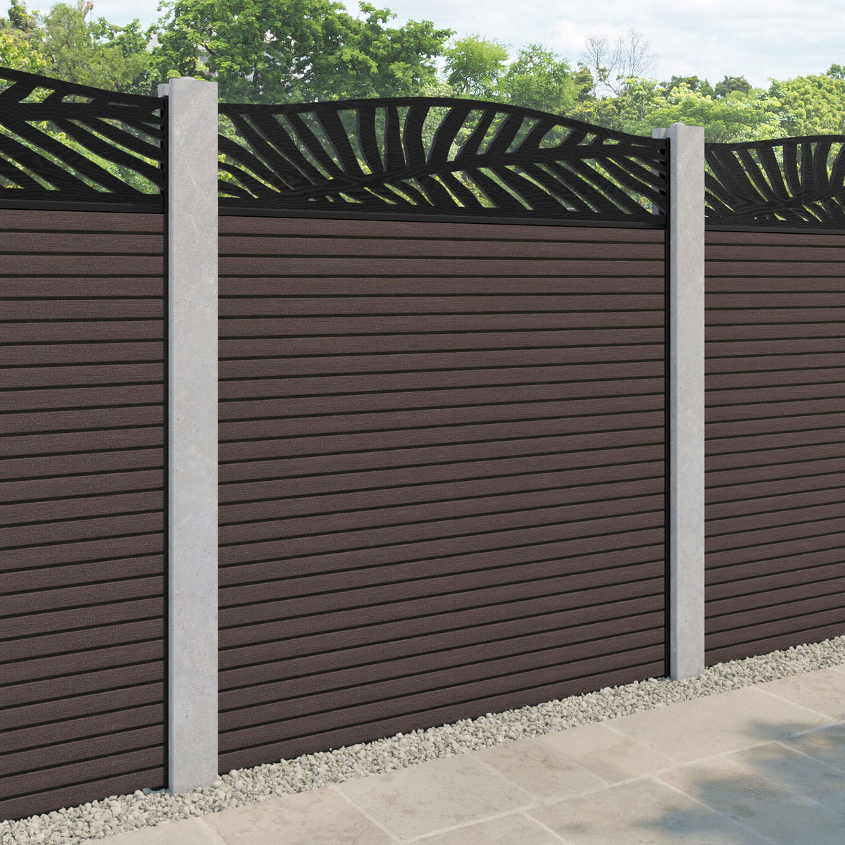 Hudson Palm Curved Top Fence Panel Mid Brown - for existing concrete posts
