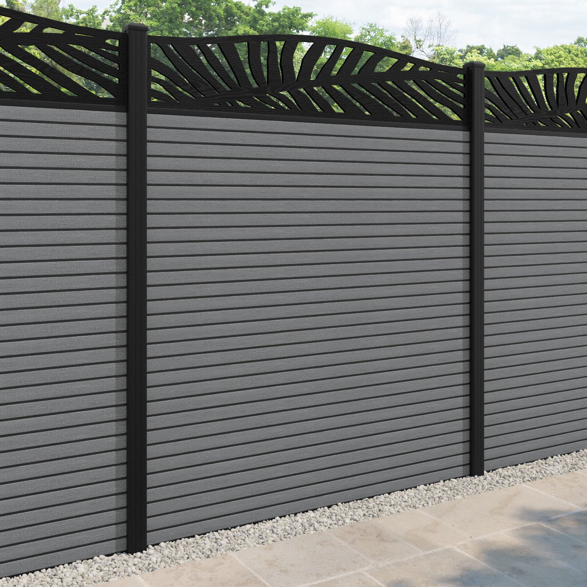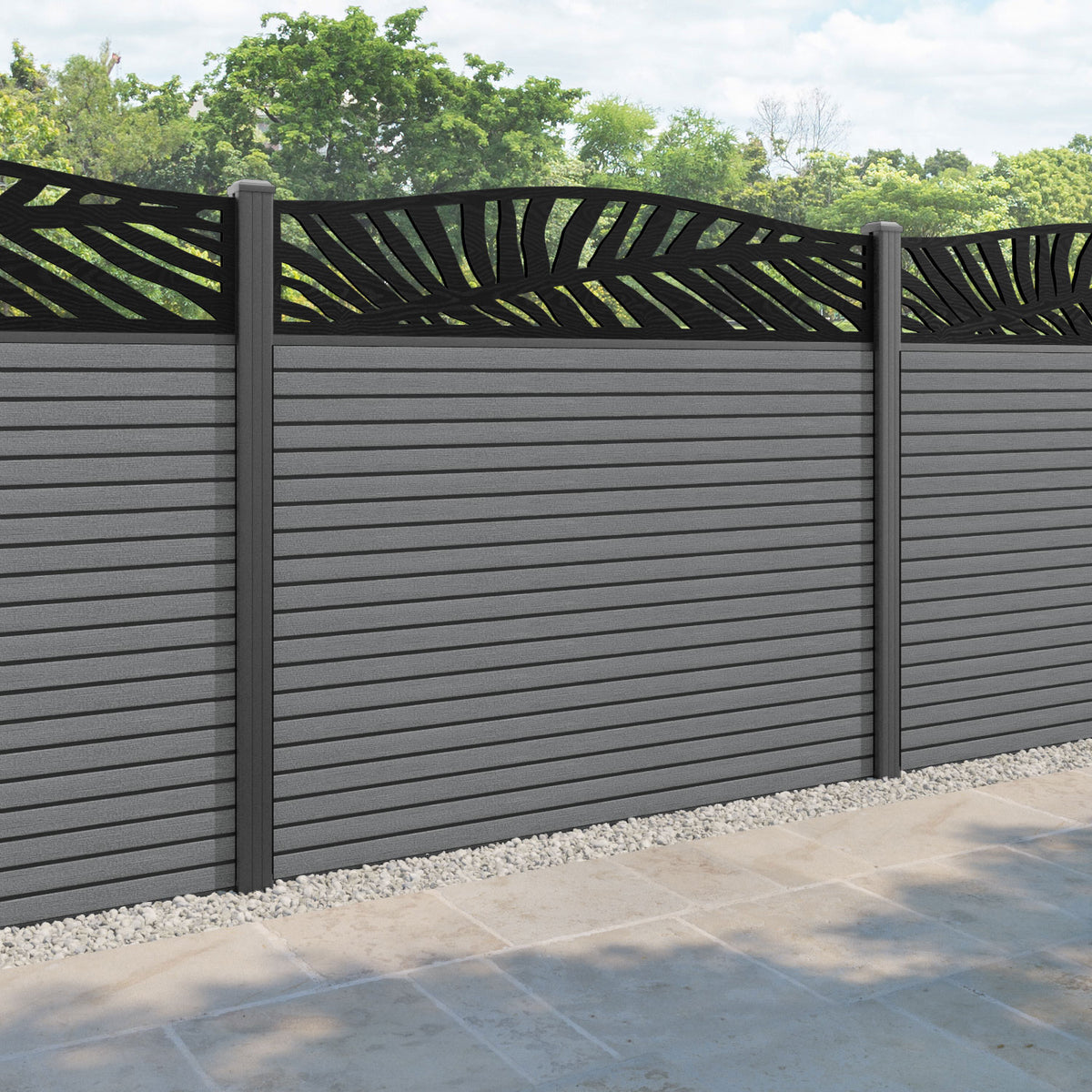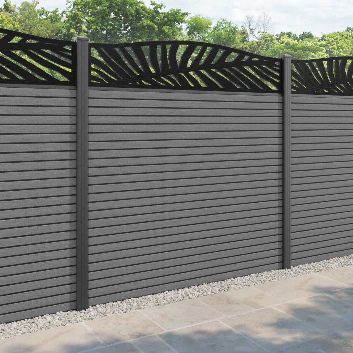 Hudson Palm Curved Top Fence Panel Mid Grey - with our aluminium posts