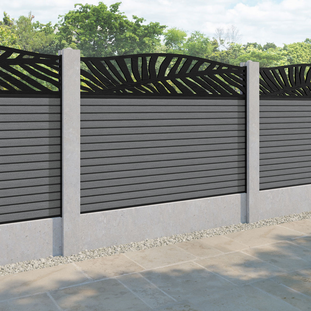 Hudson Palm Curved Top Fence Panel Mid Grey - for existing concrete posts