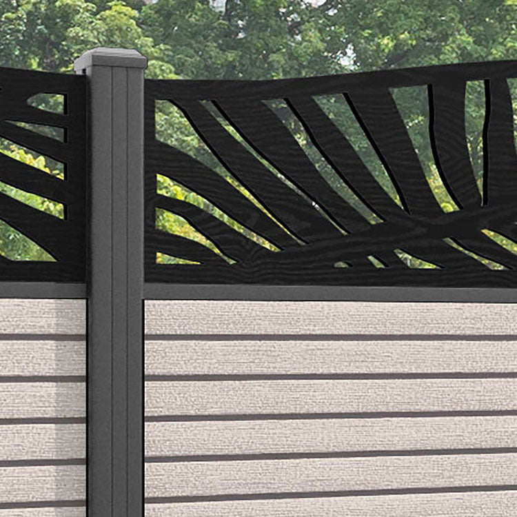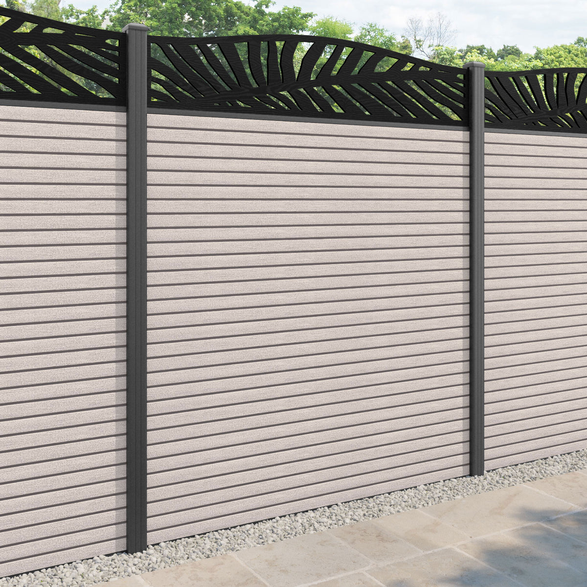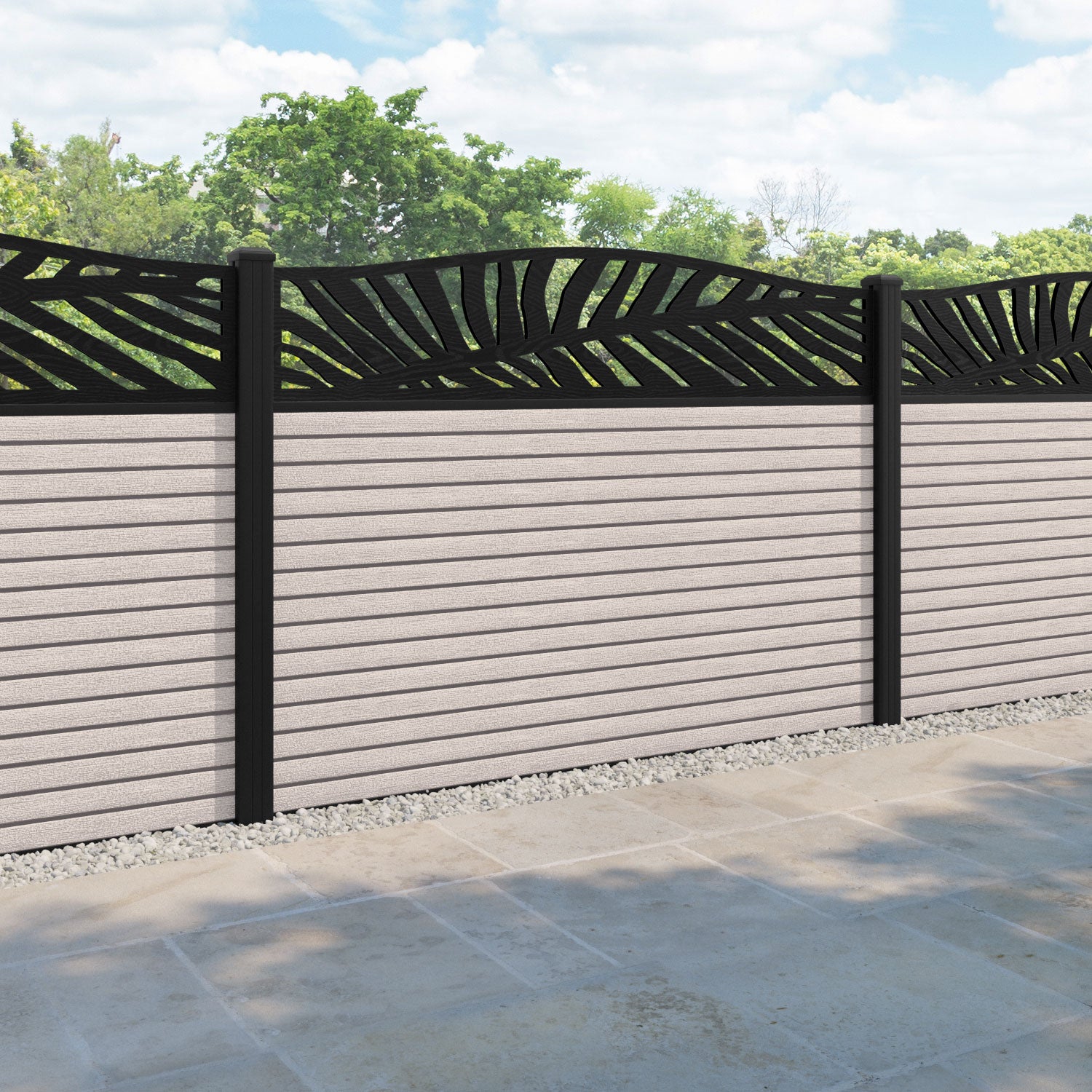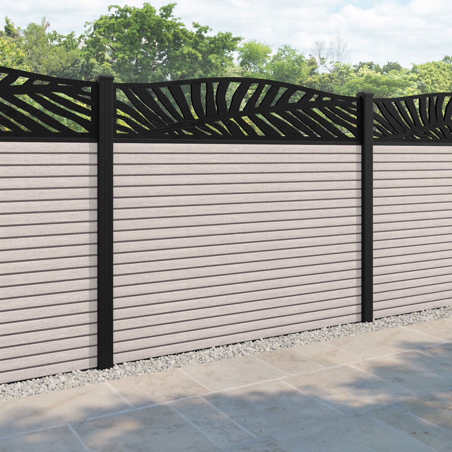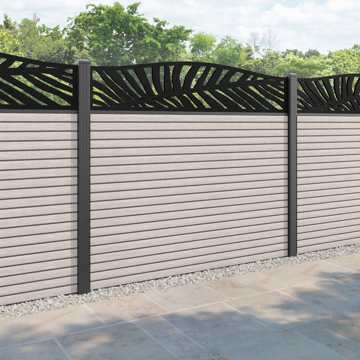 Hudson Palm Curved Top Fence Panel Mid Stone - with our aluminium posts