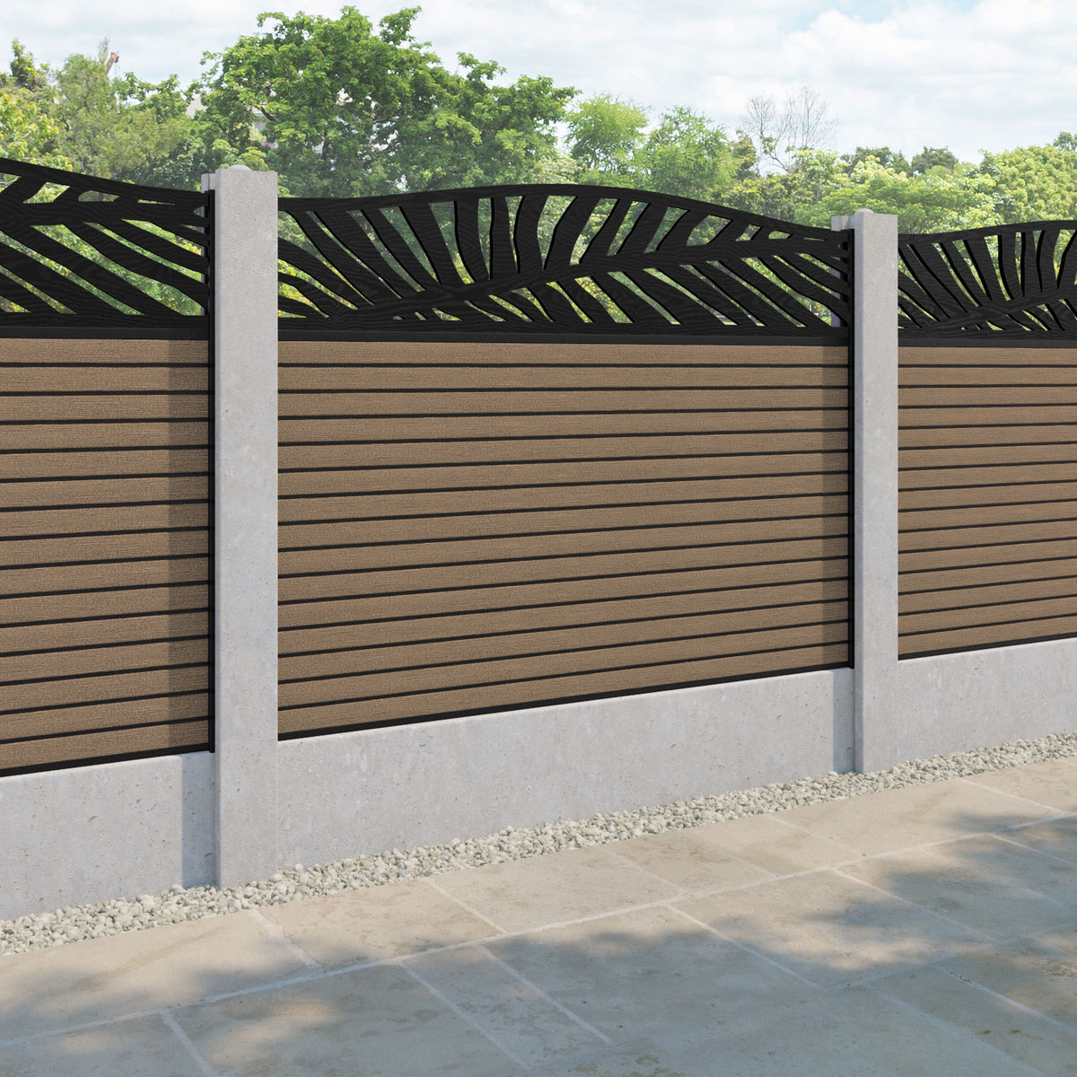 Hudson Palm Curved Top Fence Panel Teak - for existing concrete posts