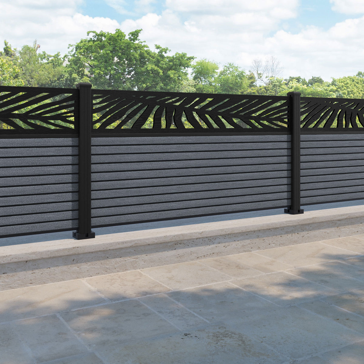 Hudson Palm Fence Panel Anthracite - with our aluminium posts