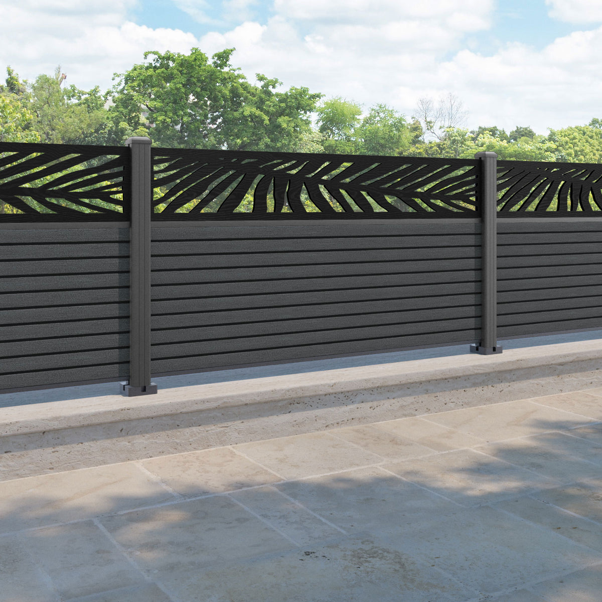 Hudson Palm Fence Panel Dark Grey - with our aluminium posts
