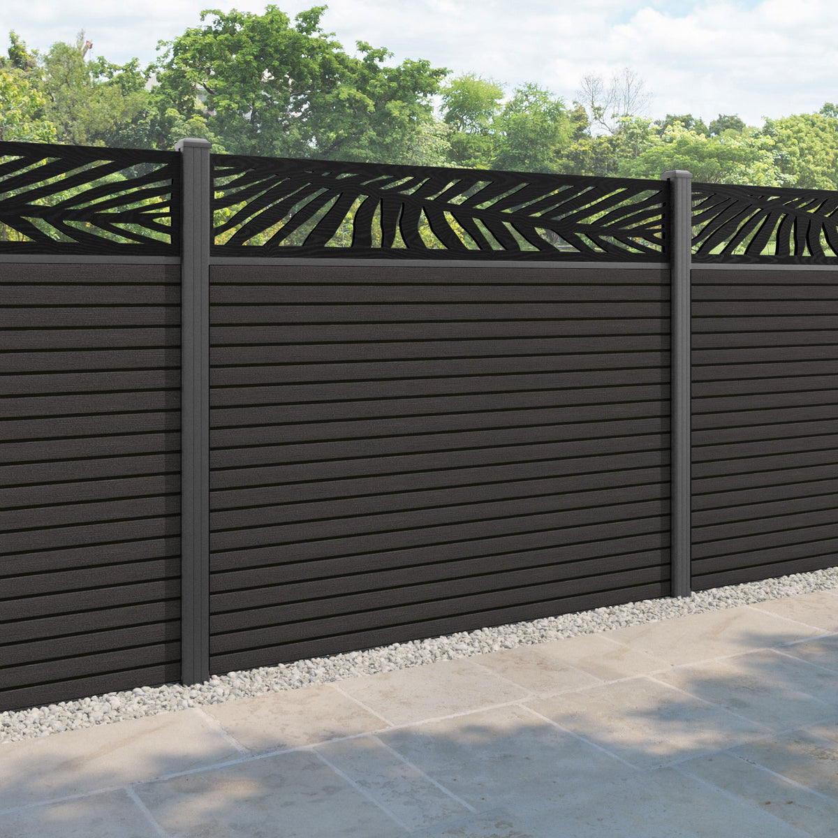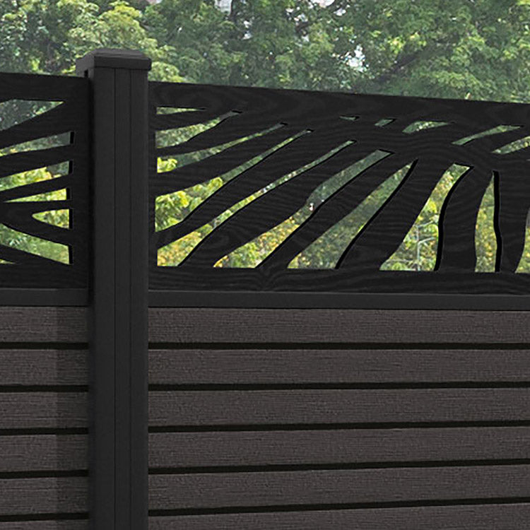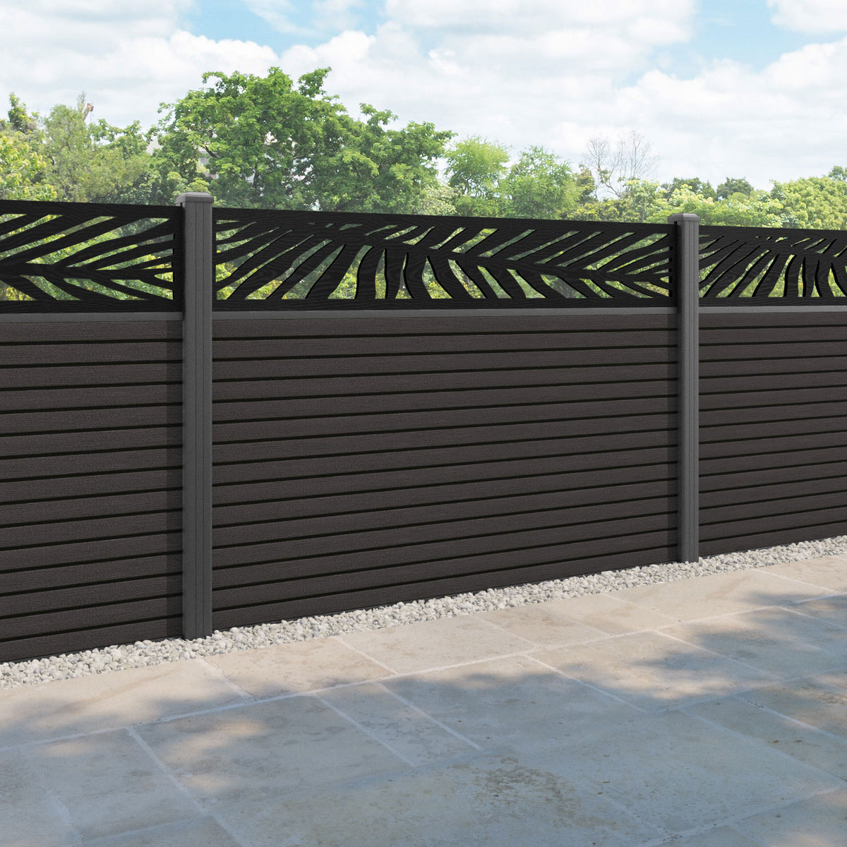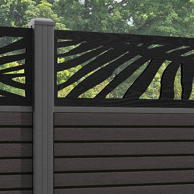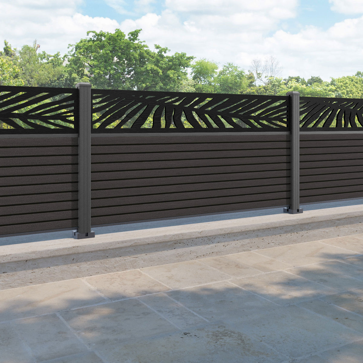 Hudson Palm Fence Panel Dark Oak - with our aluminium posts