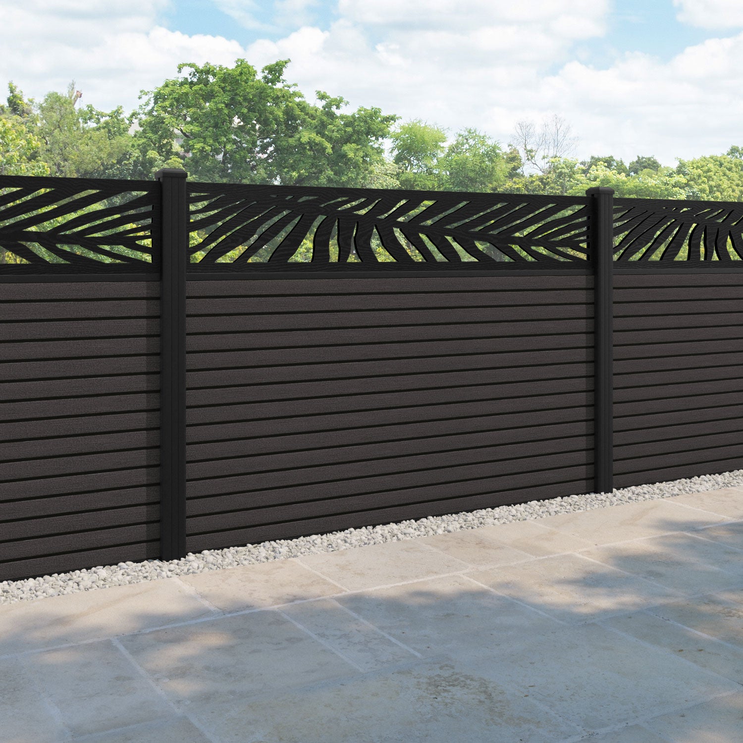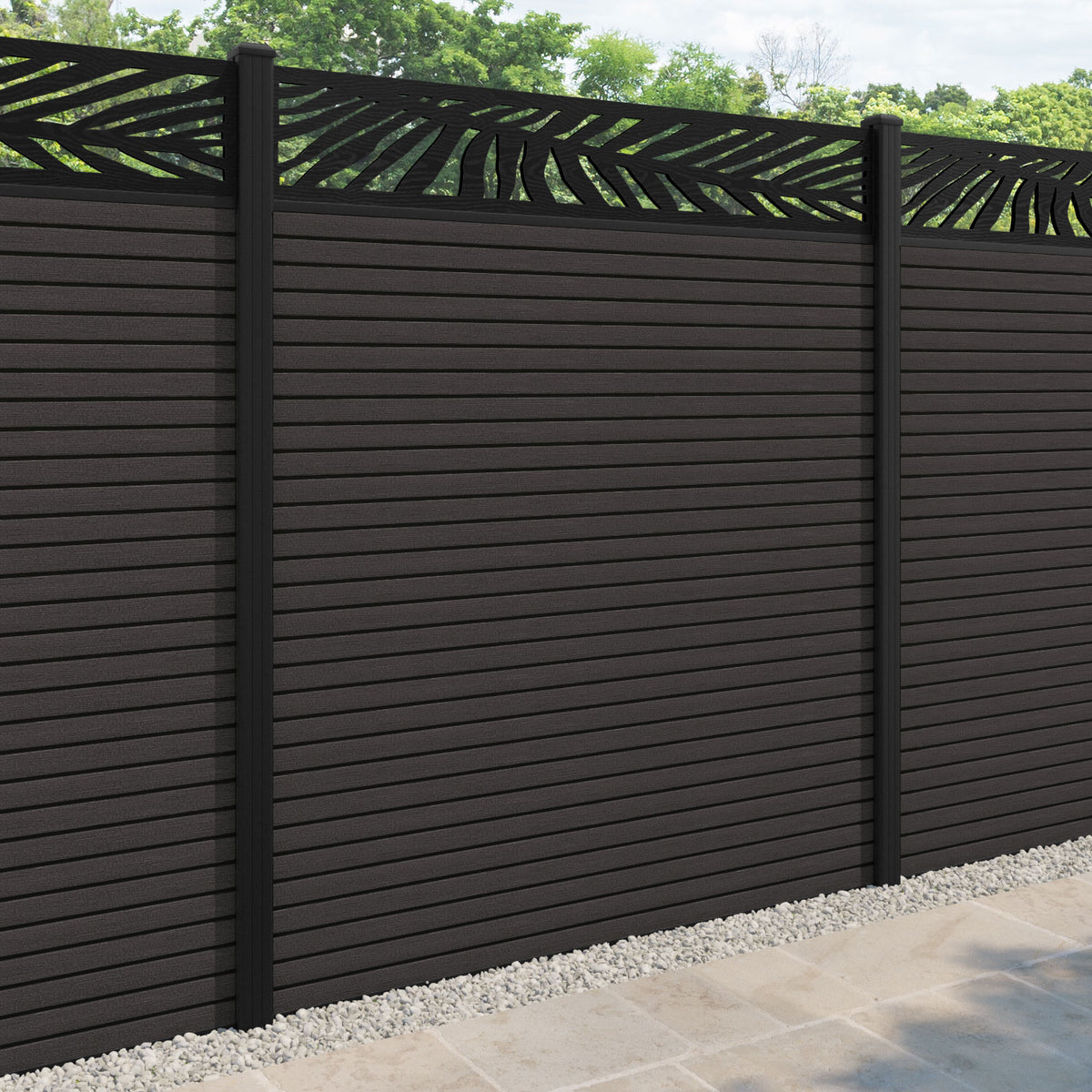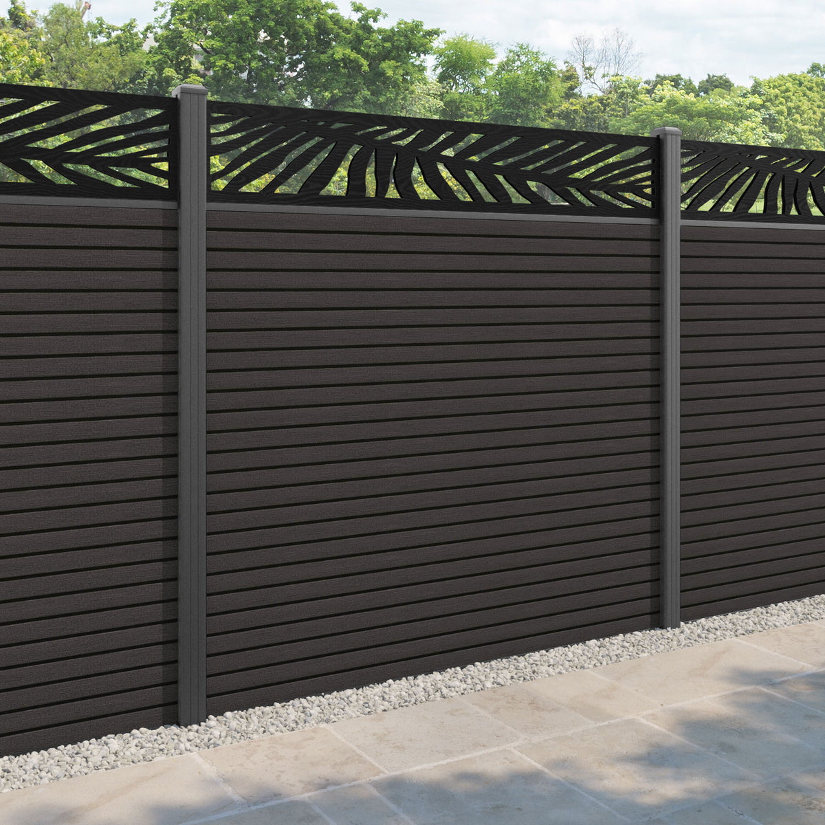 Hudson Palm Fence Panel Dark Oak - with our aluminium posts