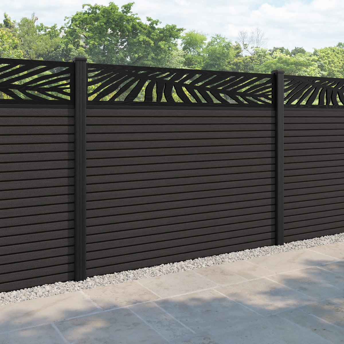 Hudson Palm Fence Panel Dark Oak - with our composite posts