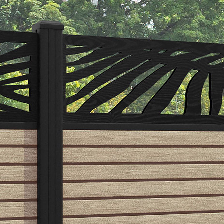 Hudson Palm Fence Panel Light Oak - with our aluminium posts