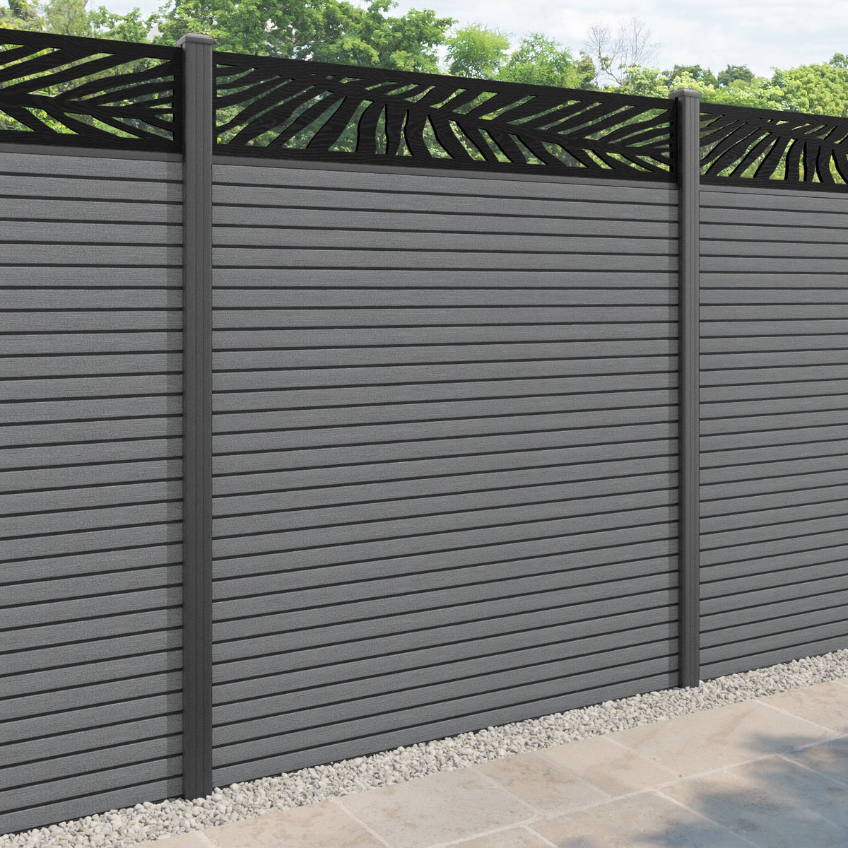 Hudson Palm Fence Panel Mid Grey - with our aluminium posts