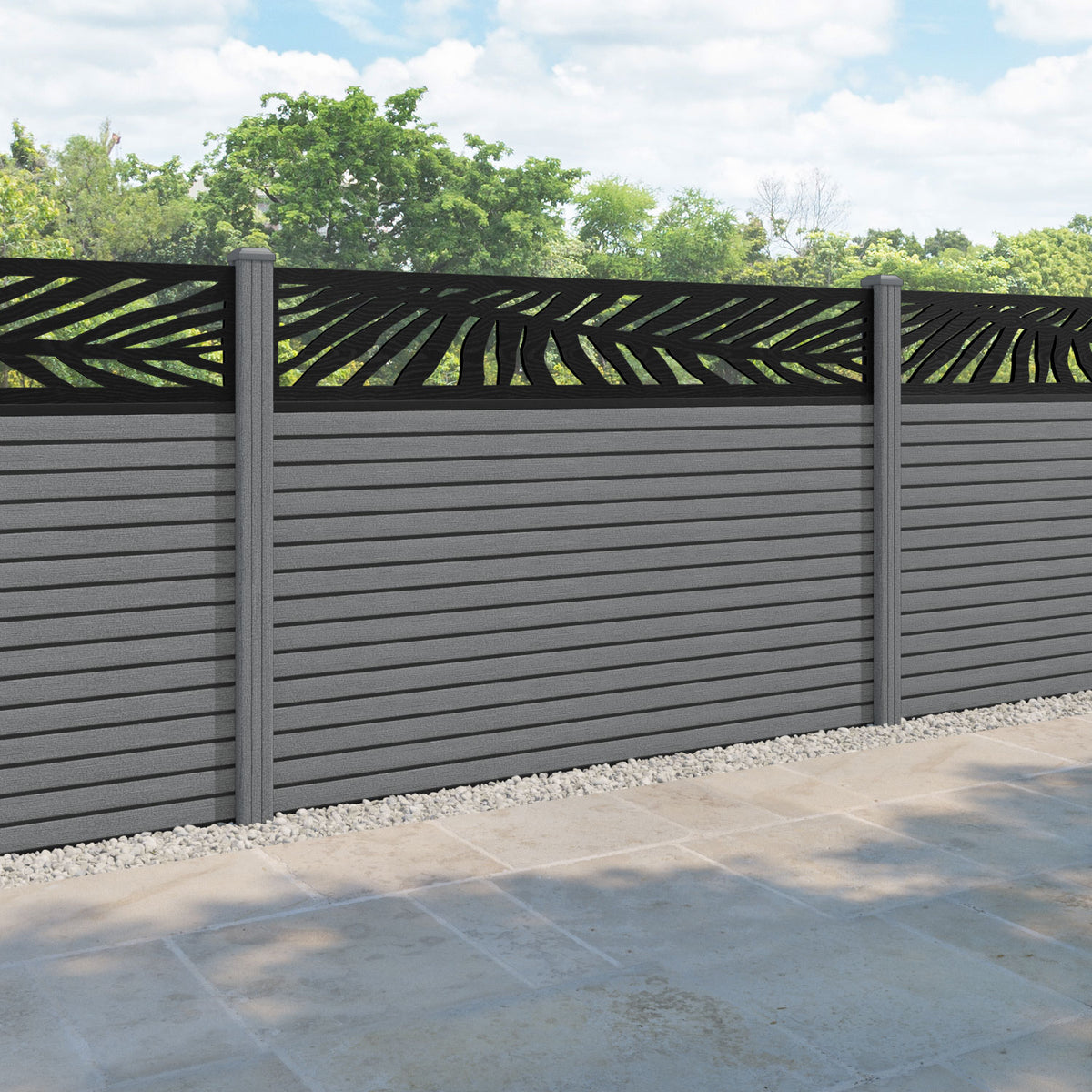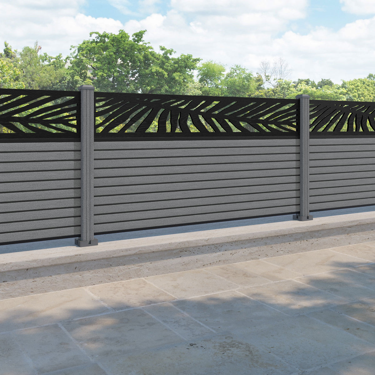 Hudson Palm Fence Panel Mid Grey - with our composite posts