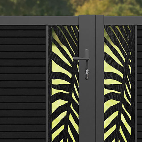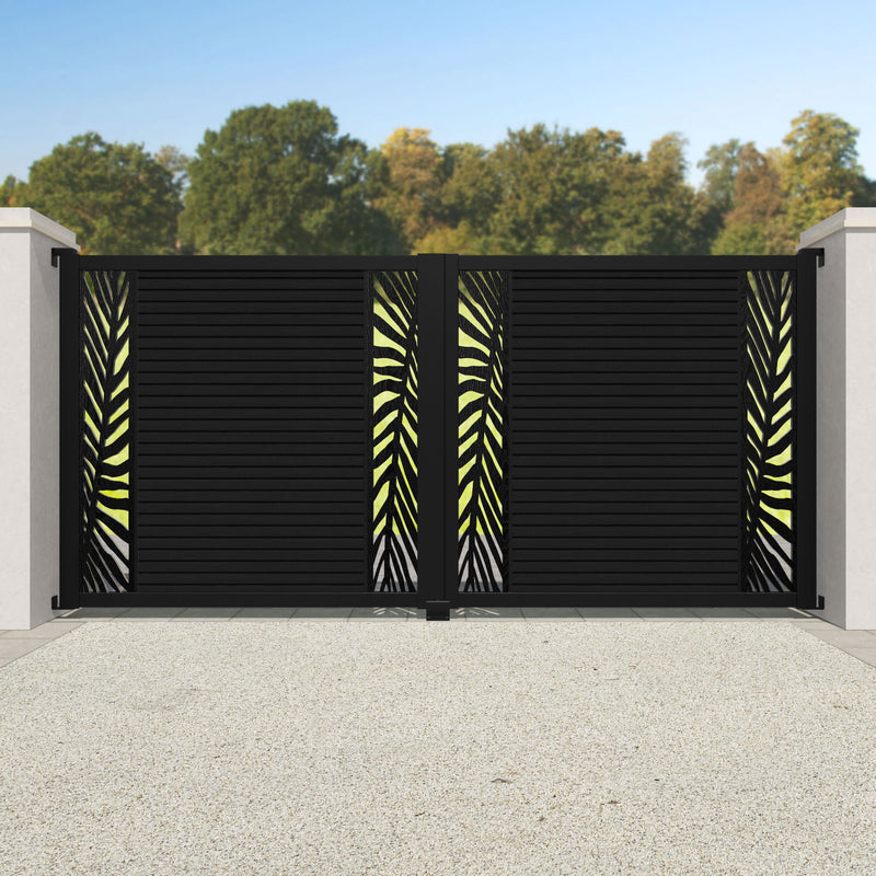 Hudson Palm Straight Top Driveway Gate Black - Middle & End Screen