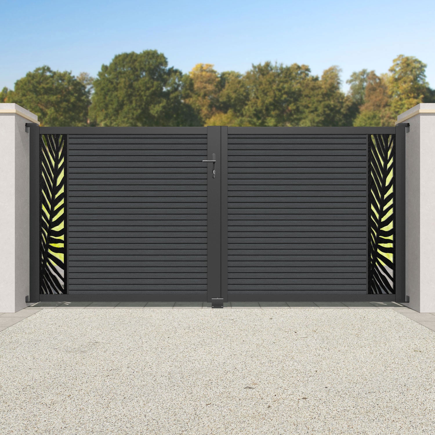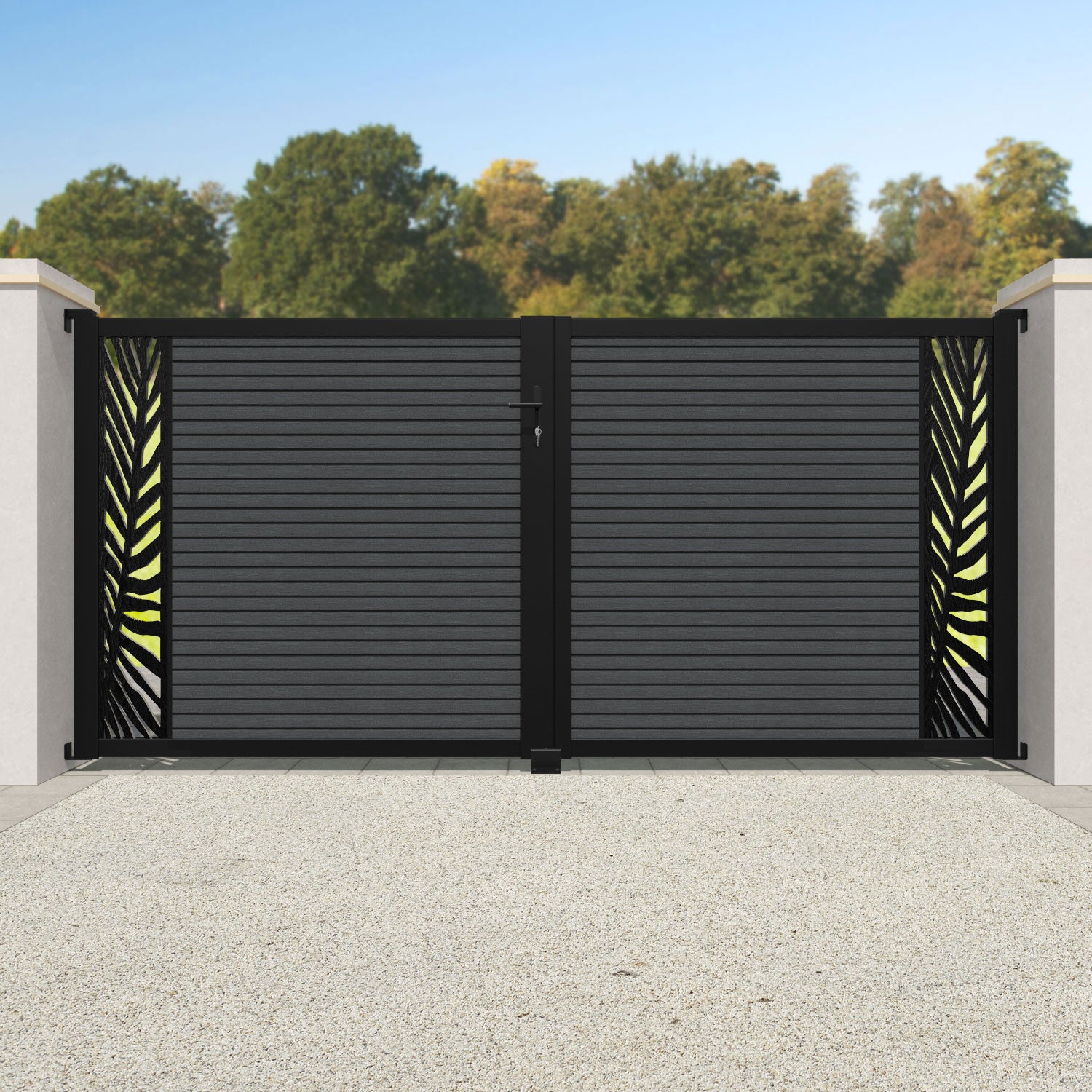 Hudson Palm Straight Top Driveway Gate Dark Grey - End Screen