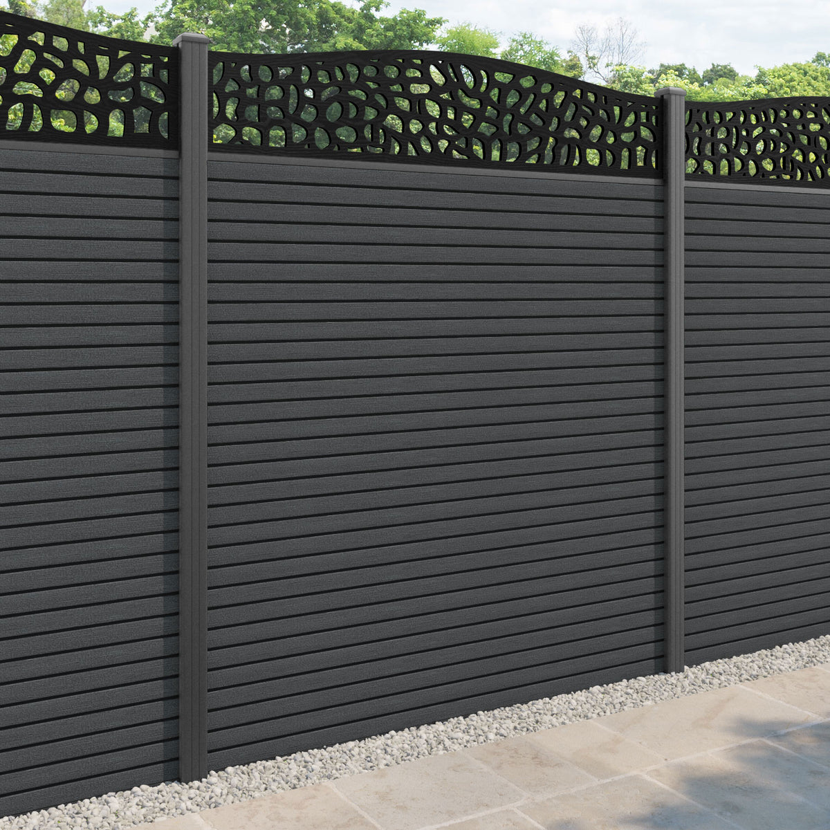 Hudson Pebble Curved Top Fence Panel Dark Grey - with our aluminium posts
