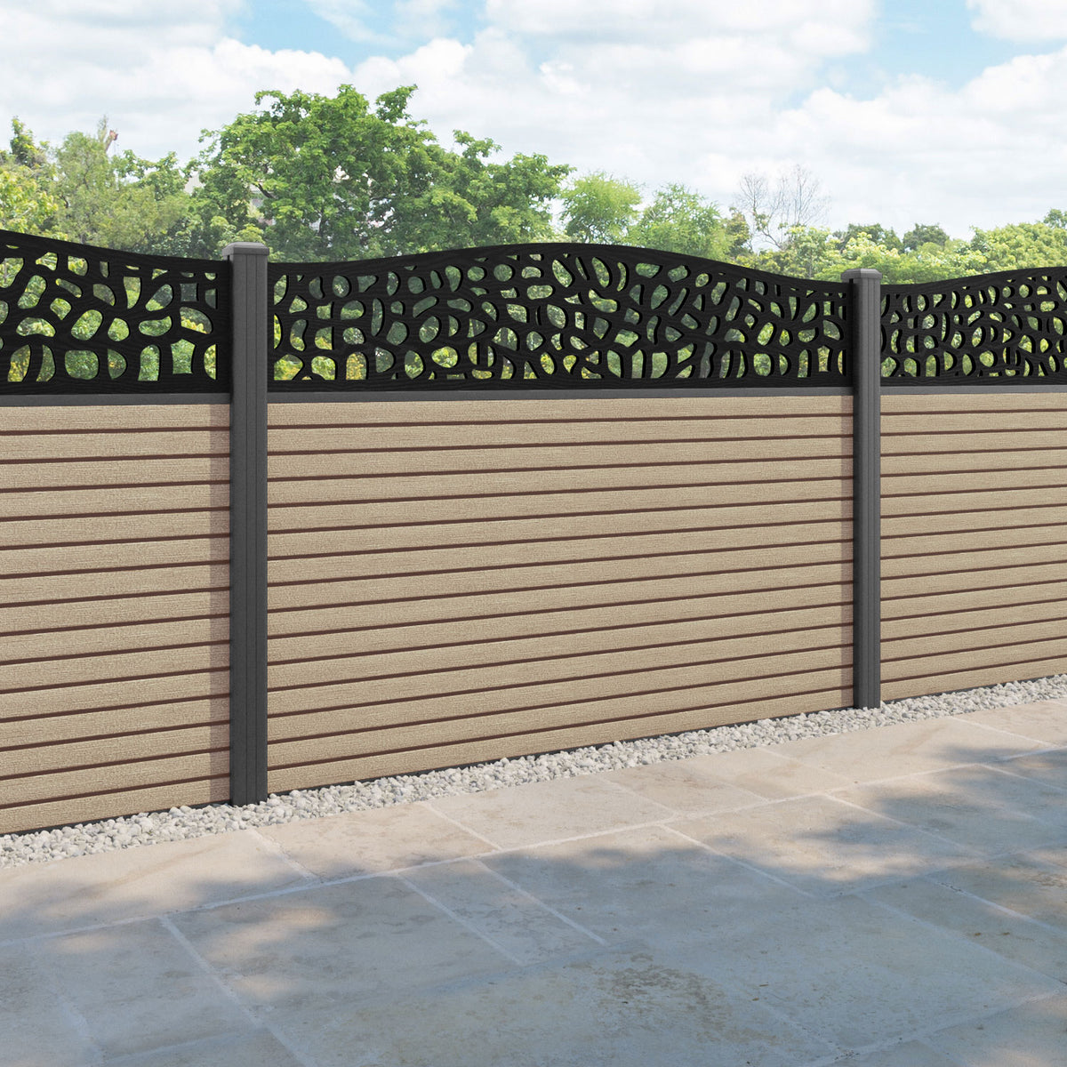 Hudson Pebble Curved Top Fence Panel Light Oak - with our aluminium posts