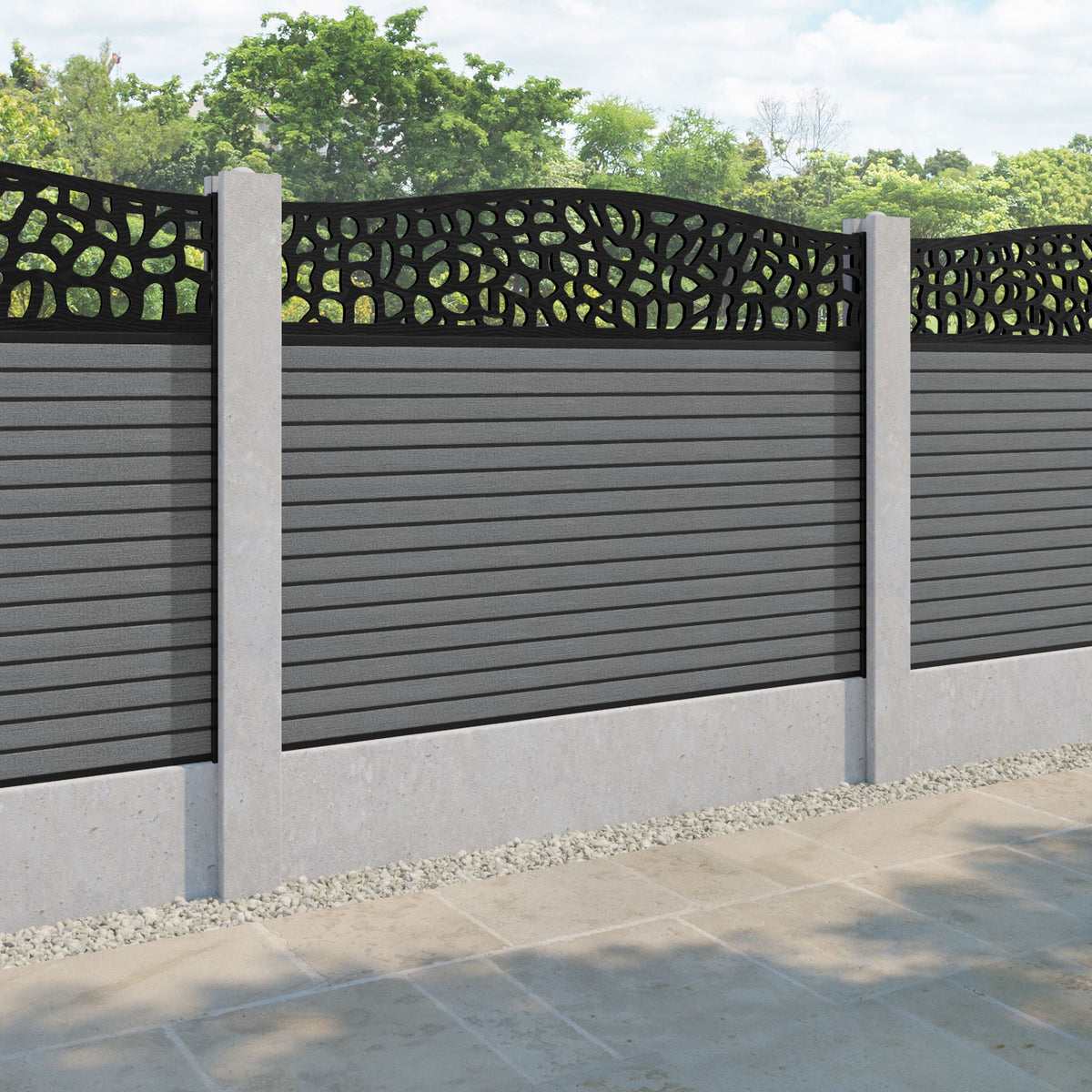 Hudson Pebble Curved Top Fence Panel Mid Grey - for existing concrete posts
