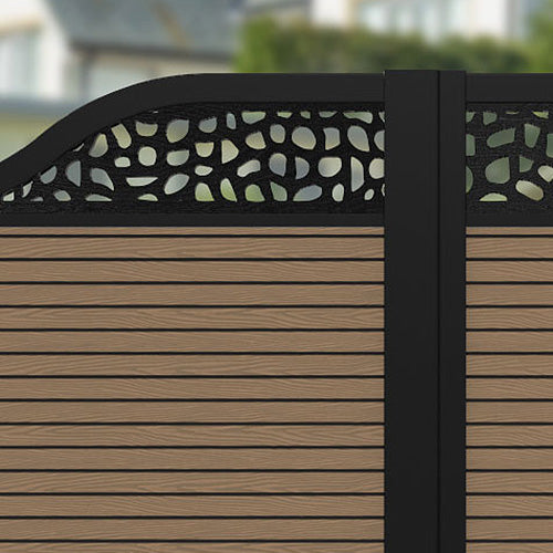Hudson Pebble Curved Top Fence Panel Teak - with our aluminium posts