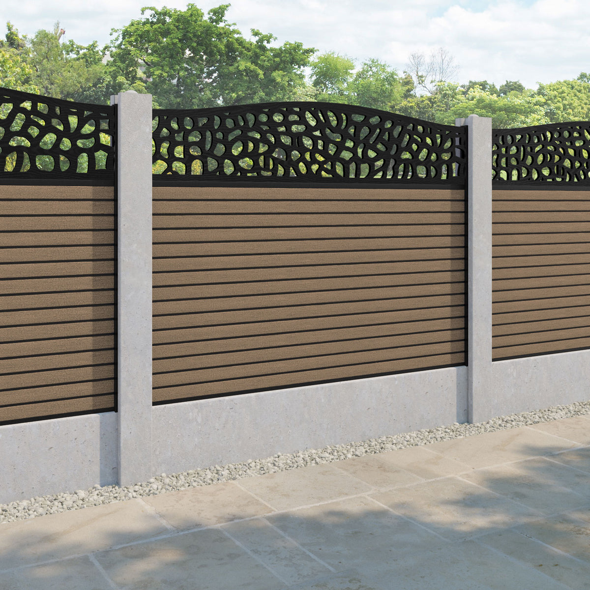 Hudson Pebble Curved Top Fence Panel Teak - for existing concrete posts