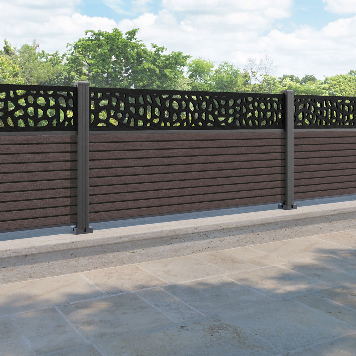 Reference: Hudson Pebble Fence Panel - Mid Brown - with our aluminium posts