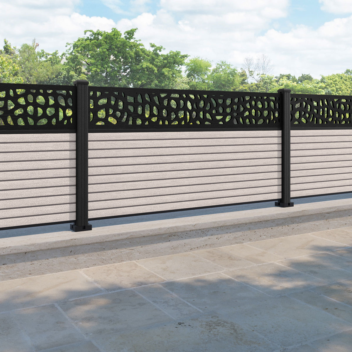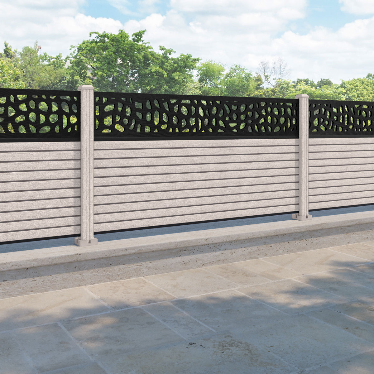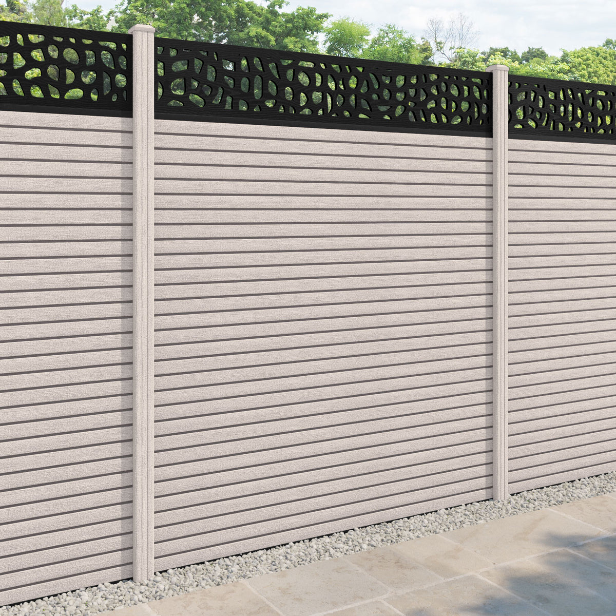 Hudson Pebble Fence Panel Mid Stone - with our composite posts