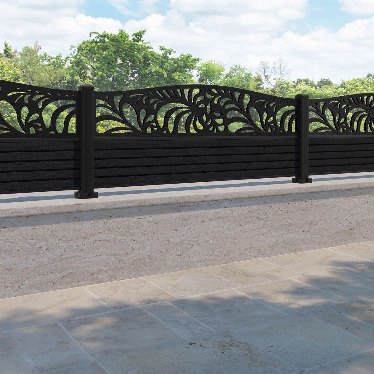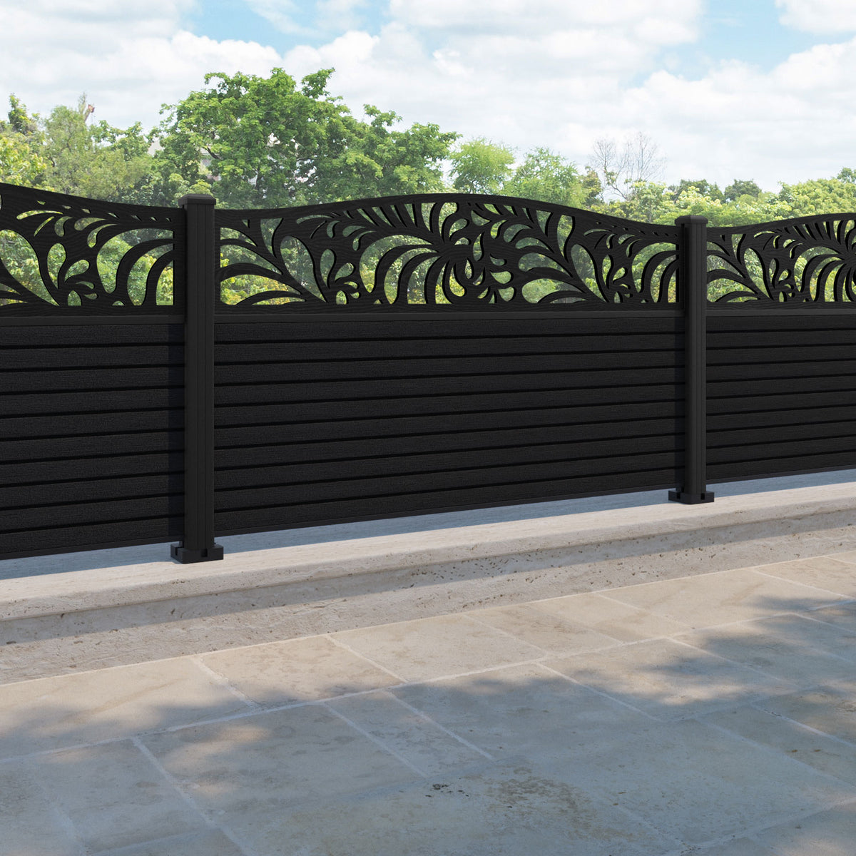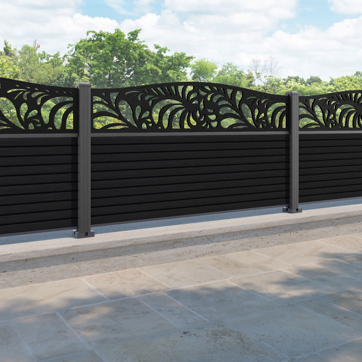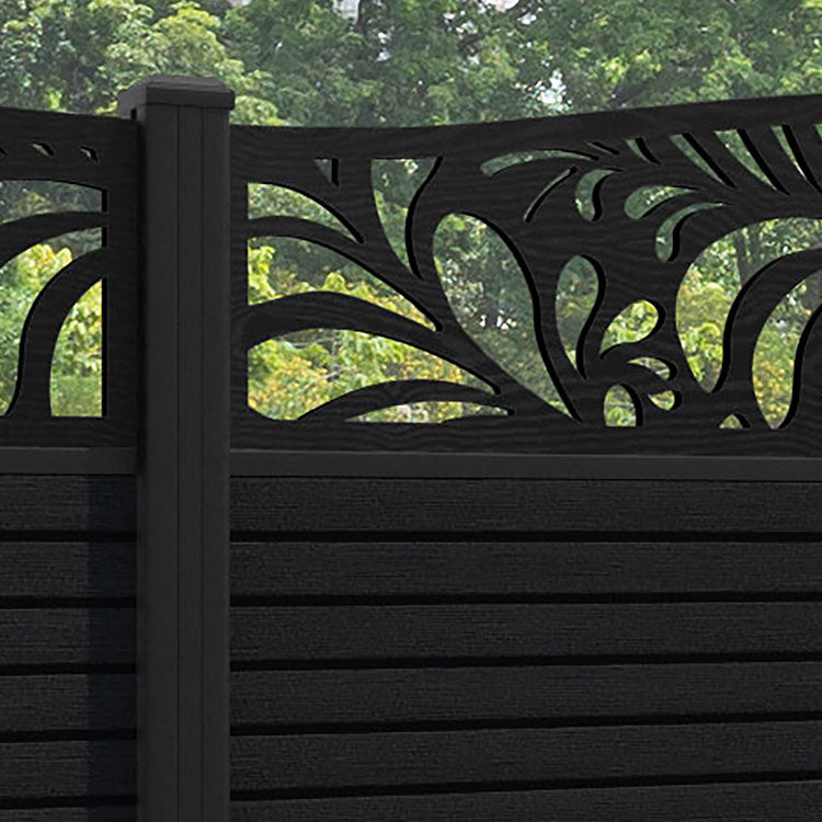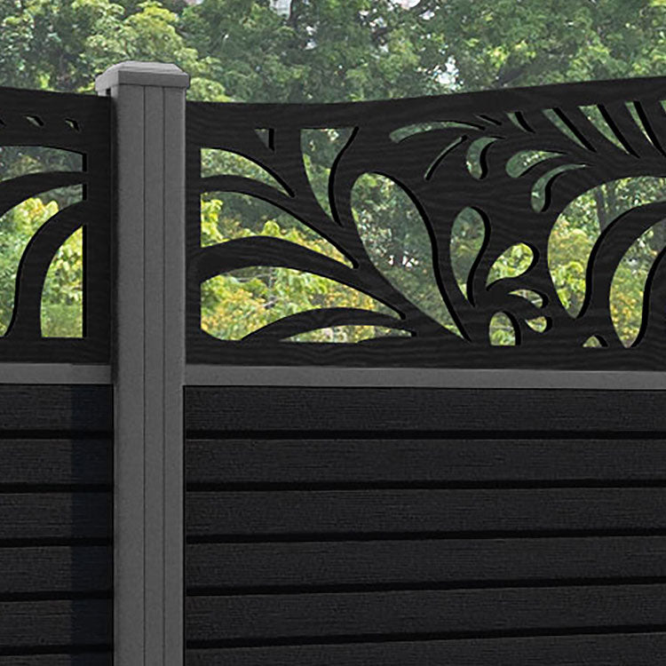 Hudson Petal Curved Top Fence Panel Black - with our aluminium posts