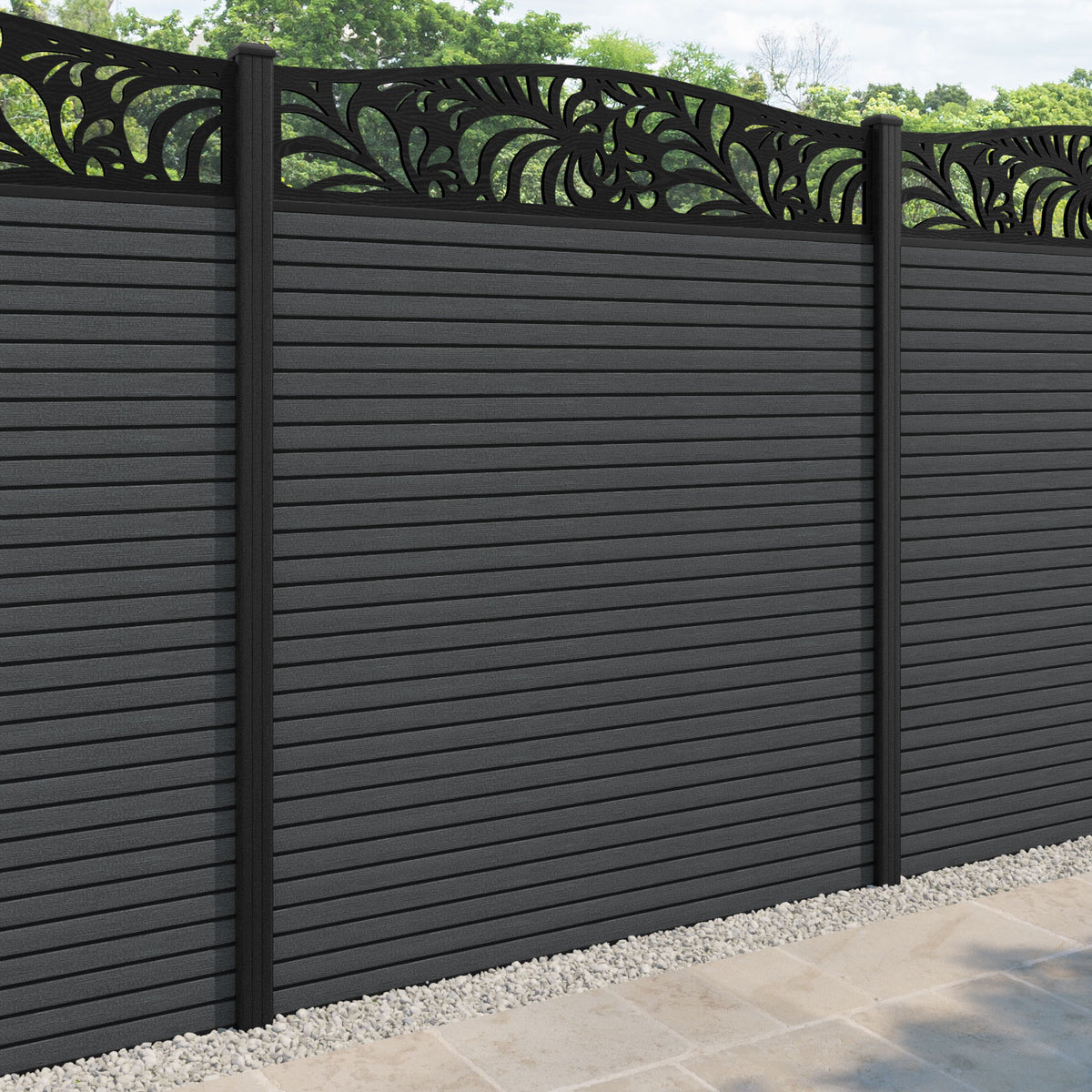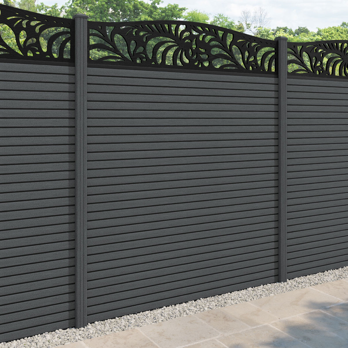 Hudson Petal Curved Top Fence Panel Dark Grey - with our composite posts