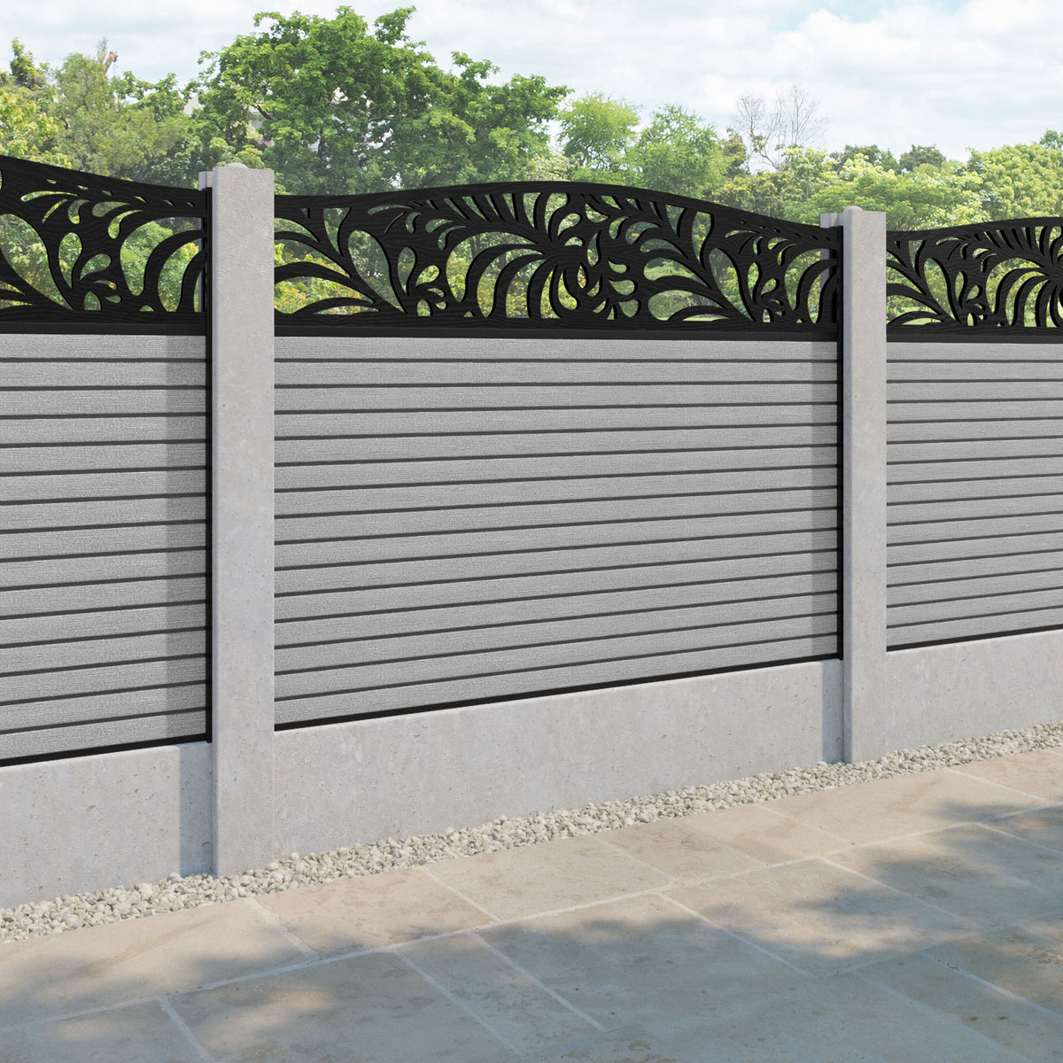 Hudson Petal Curved Top Fence Panel Light Grey - for existing concrete posts