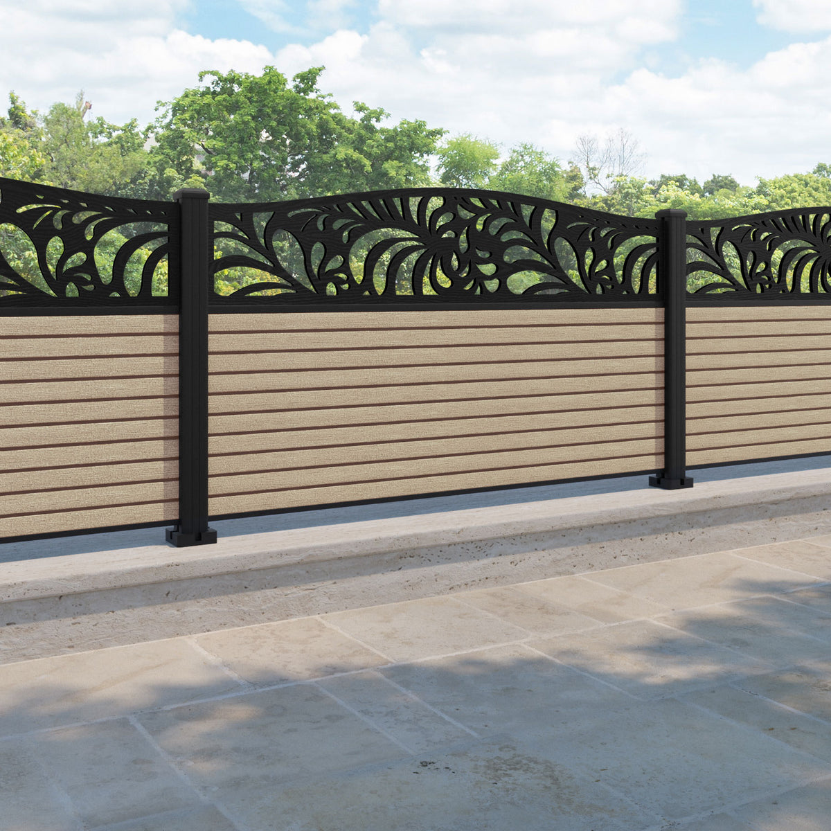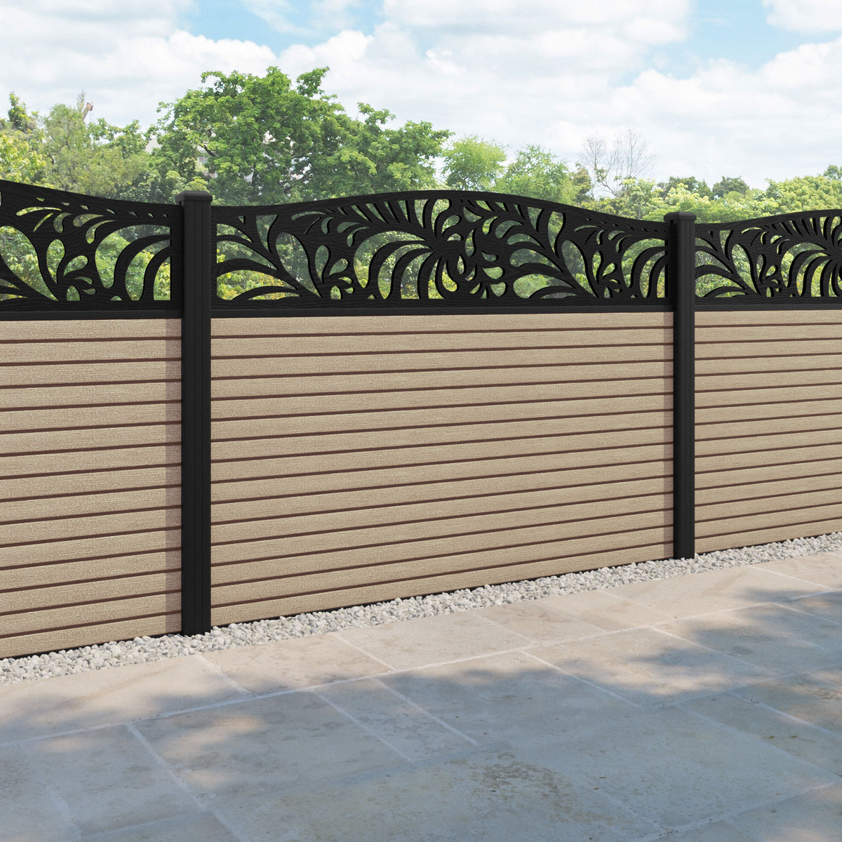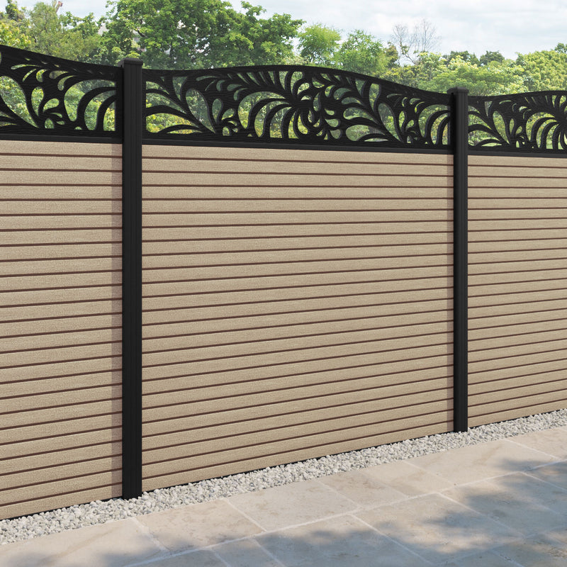 Hudson Petal Curved Top Fence Panel Light Oak - with our aluminium posts