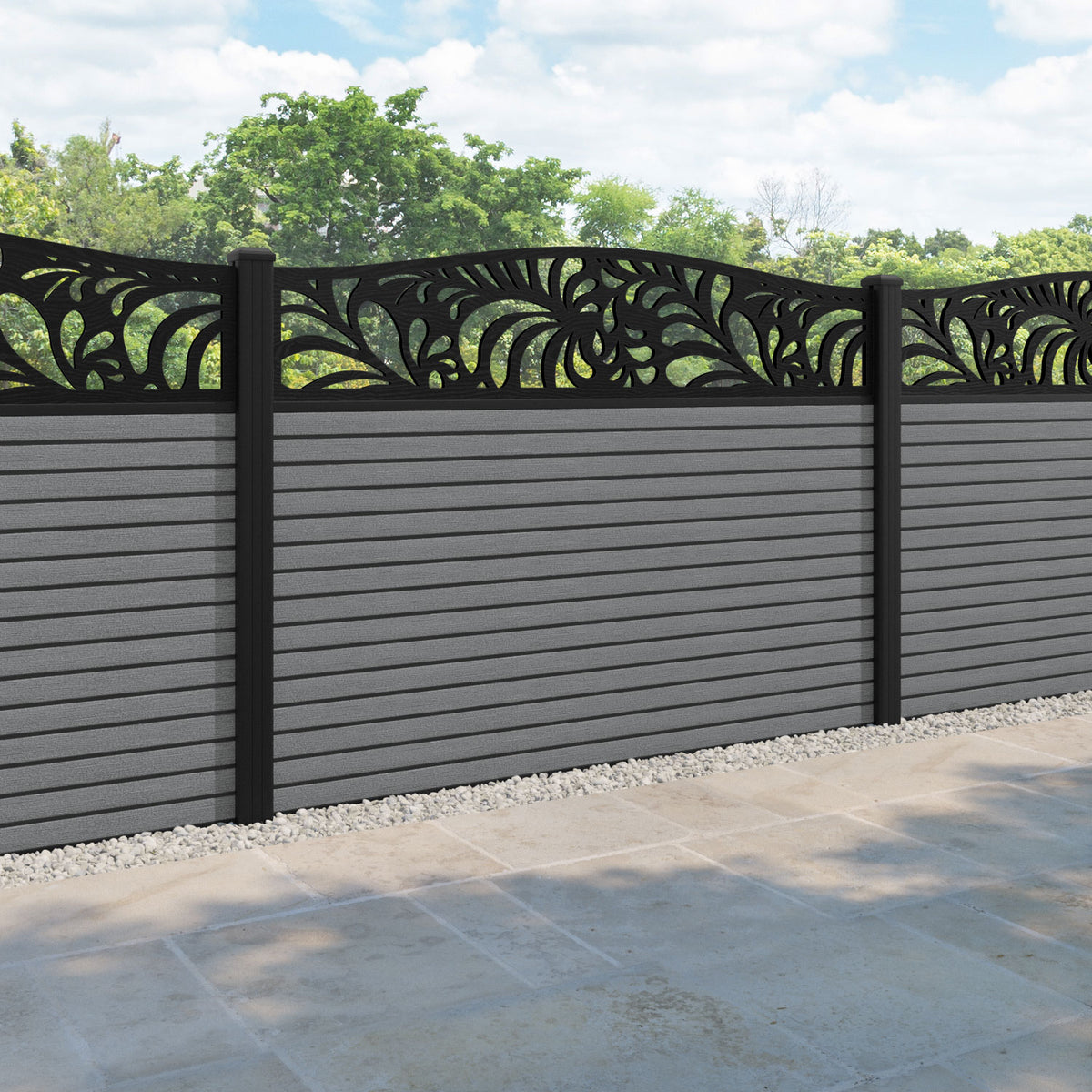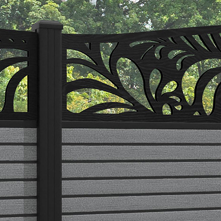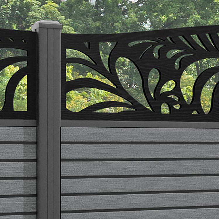 Hudson Petal Curved Top Fence Panel Mid Grey - with our aluminium posts